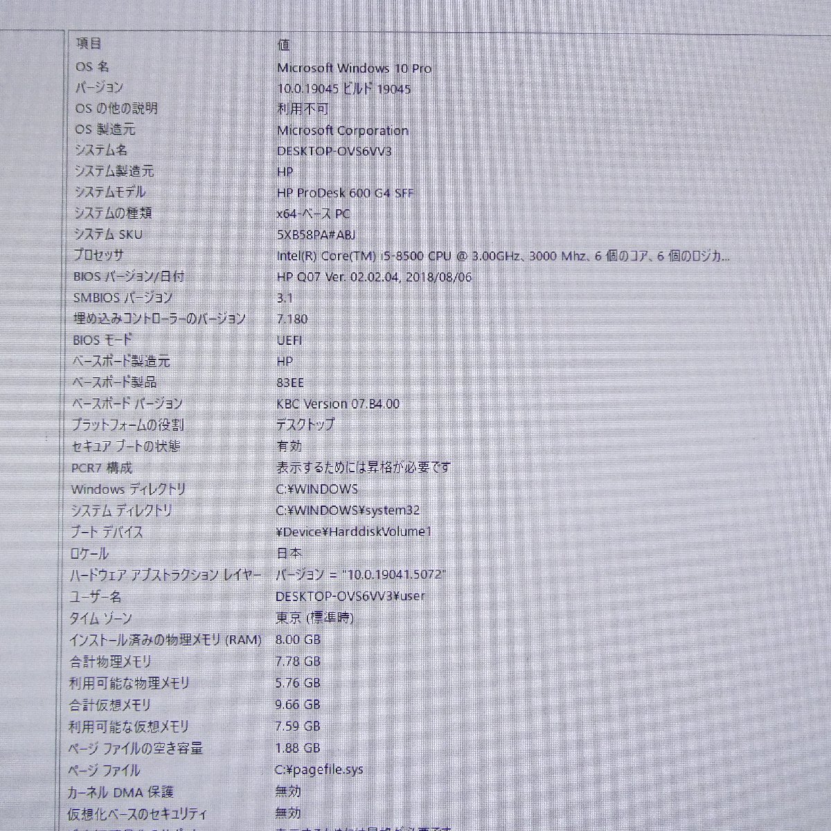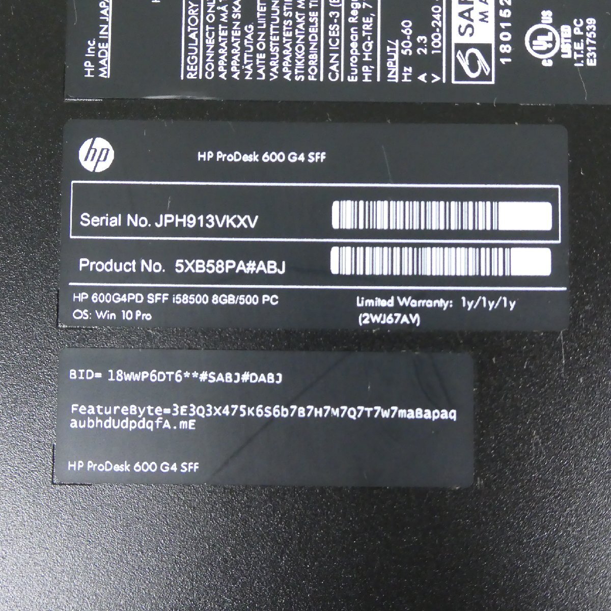 | 動作品 HP デスクトップパソコン [Windows10/Core i5-8500 3.00GHz/8GB/500GB 初期化済] ProDesk 600 G4 SFF PC 中古■SE183s■ |
