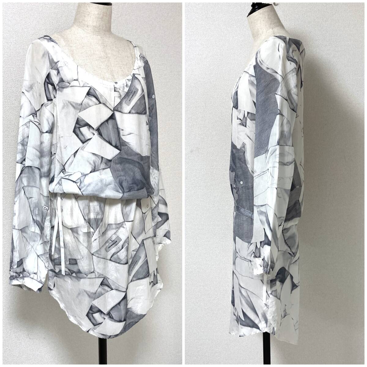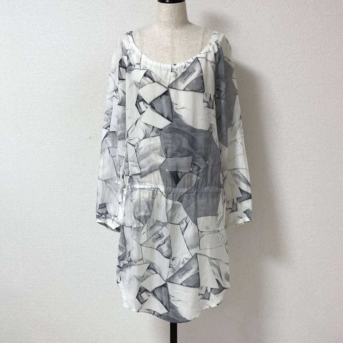 初期 ここのえ MM6 Maison Martin Margiela 6 シャツ柄 転写 総柄 ワンピース 38サイズ メゾンマルタンマルジェラ チュニック archive 2294