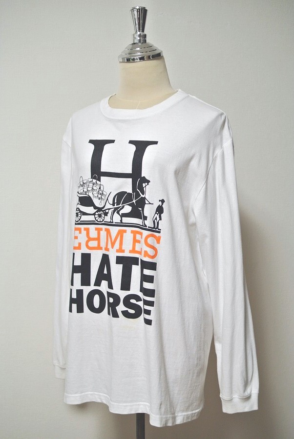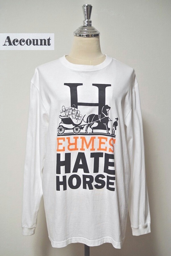 上司からの委託品となります。 Account「アカウント」の、HATE HORSE LONG-T(ヘイト ホース ロングT)です♪ 大胆なグラフィックで存在感を放つロングスリーブTシャツ。 フロントに配置した「HATE HORSE」のメッセージがユーモアと毒気を兼ね備え、ストリートスタイルに個性をプラスします。 程よいオーバーサイズシルエットで、デニムやカーゴパンツとの相性も抜群。 一枚で着ても、インナーとしても活躍する万能な一枚です。 お色は、ホワイトです。 こちらのモニターでは、ほぼ写真の色合いだと思います。 商品番号:22-3214L 「株式会社 MARY」 |
