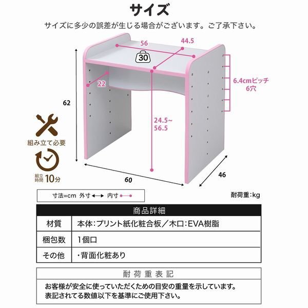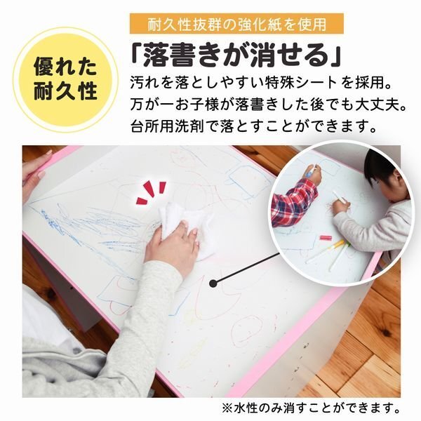 子供収納★新品/キッズデスク 学習机/ソフトエッジで安心安全 成長に合わせて 6段階 高さ調整可能 背面化粧/ホワイト ピンク/a3