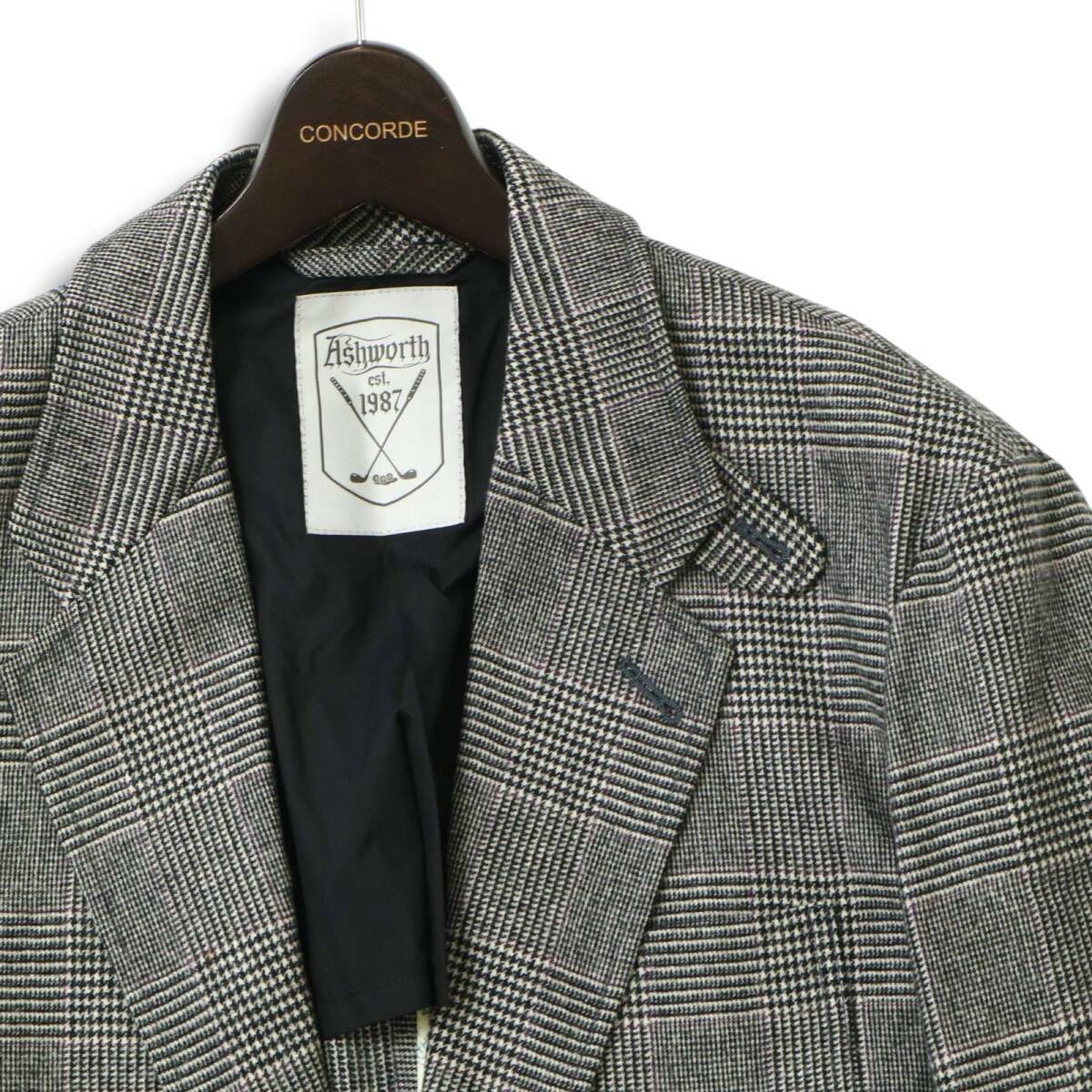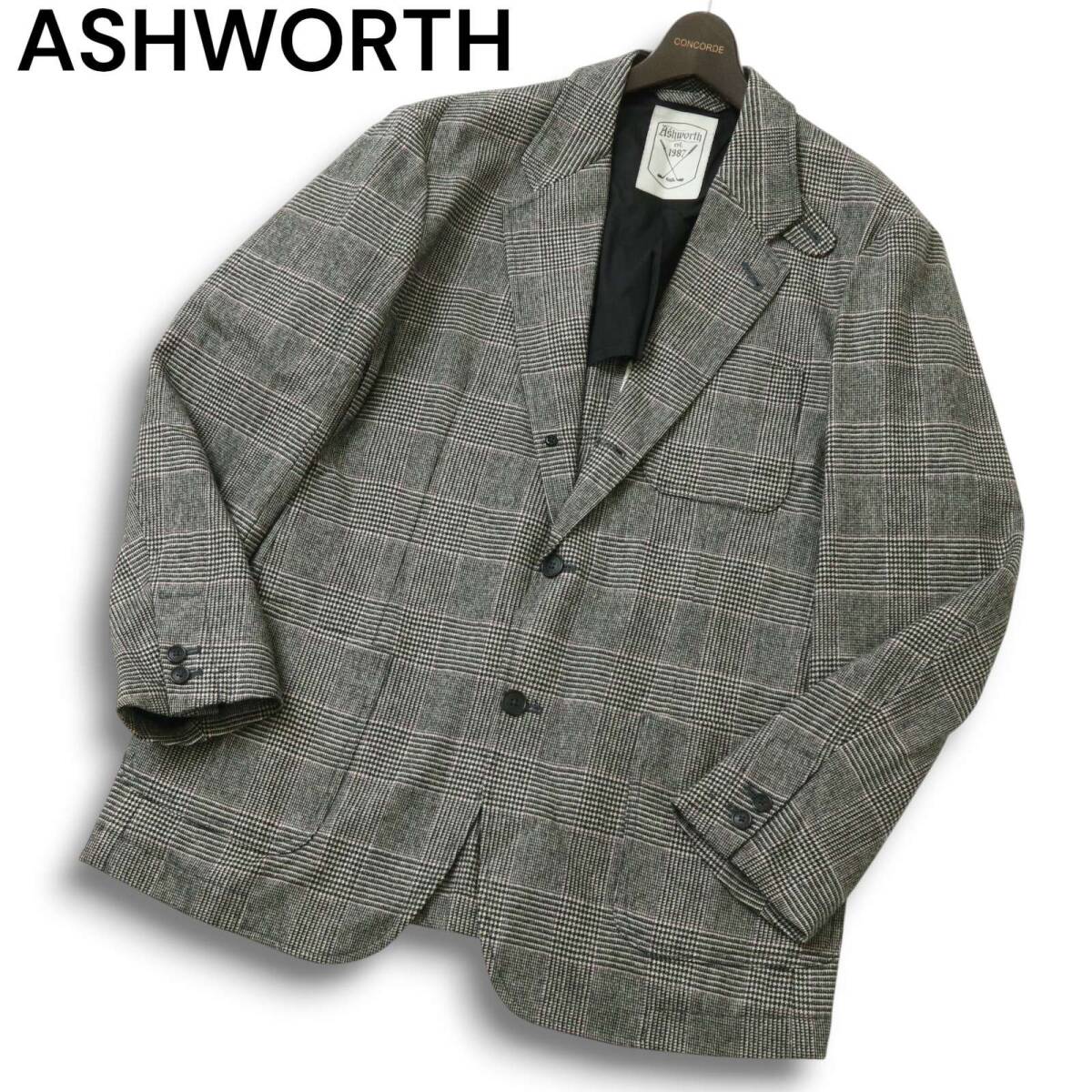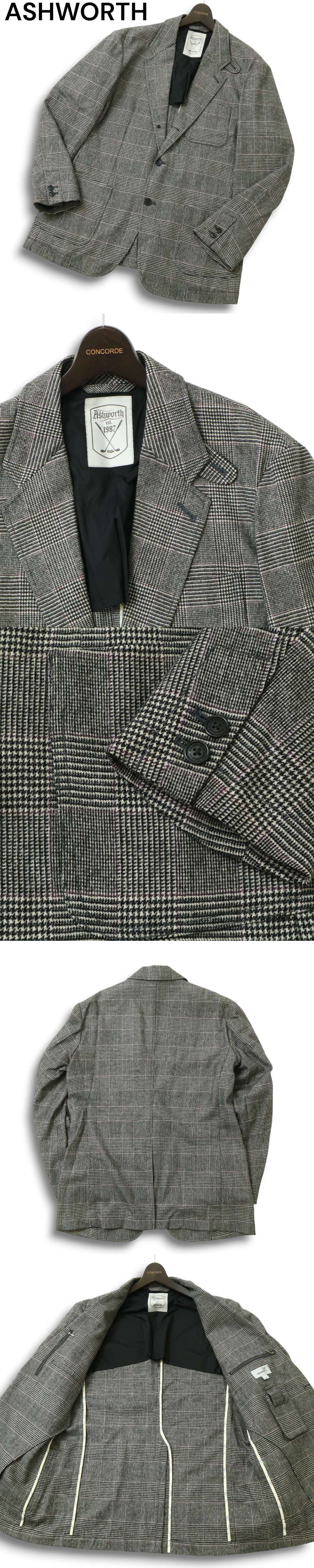 ASHWORTH アシュワース ゴルフ 秋冬 背抜き ウール★ グレンチェック テーラード ジャケット Sz.O メンズ 灰 大きいサイズ