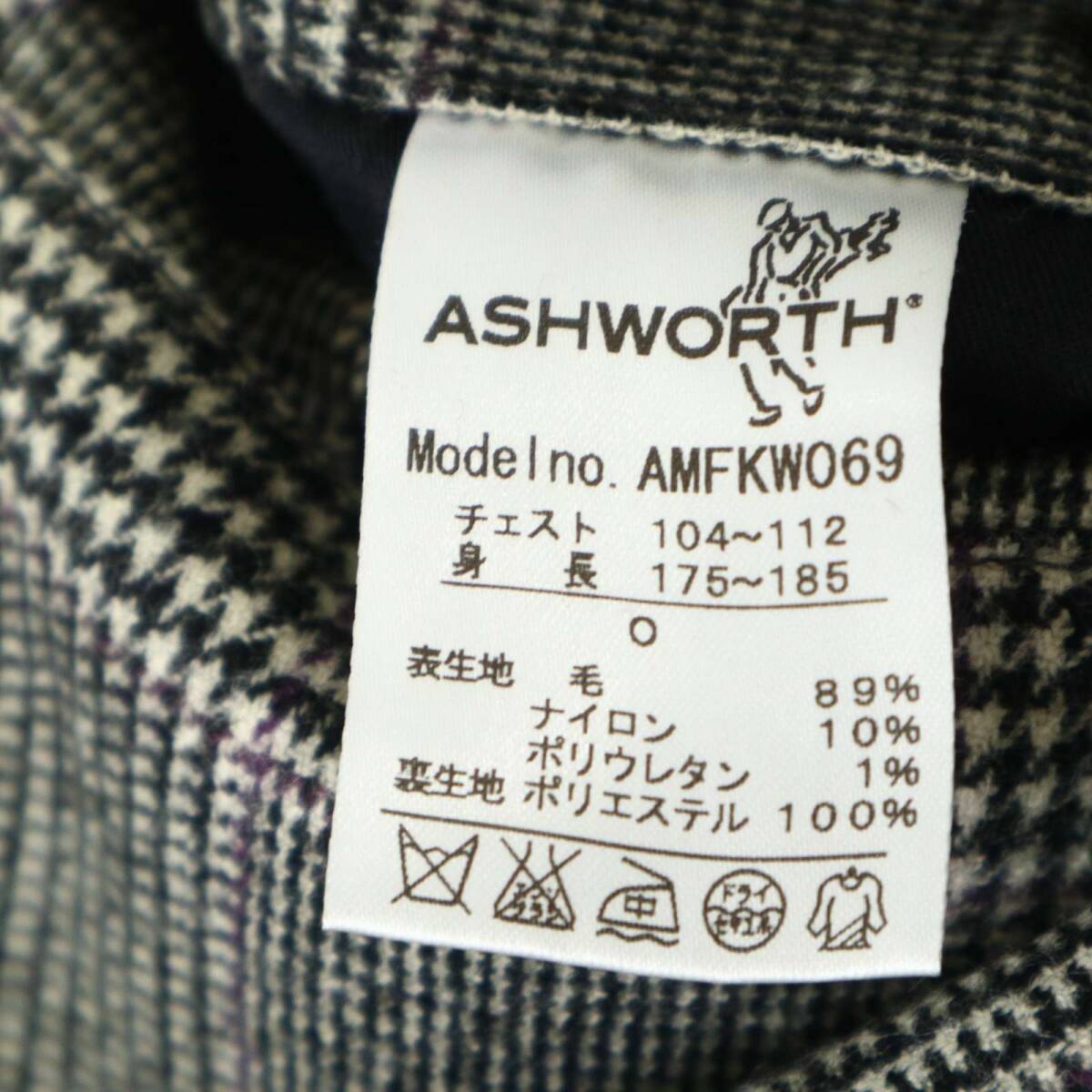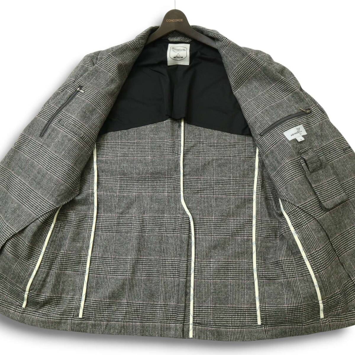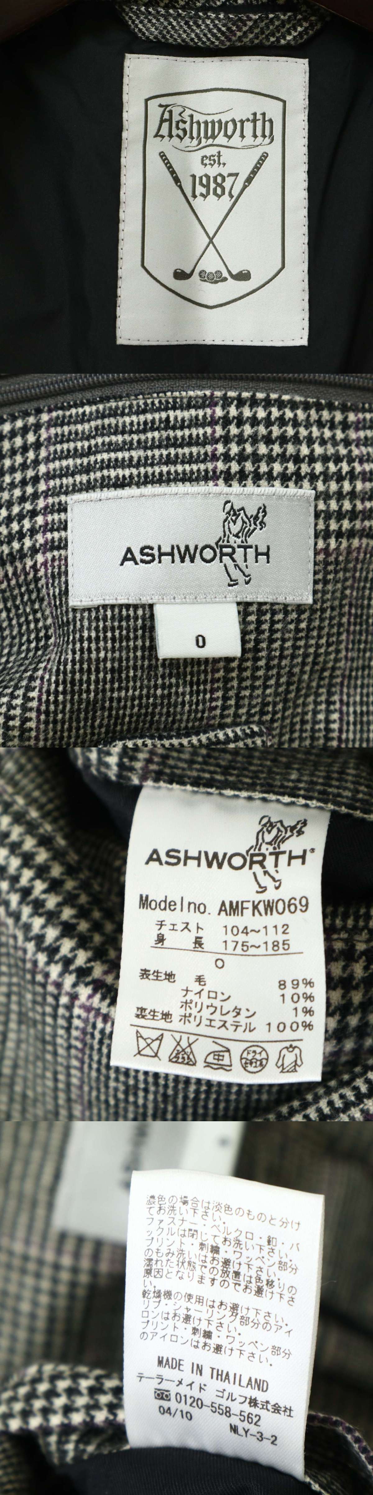 ASHWORTH アシュワース ゴルフ 秋冬 背抜き ウール★ グレンチェック テーラード ジャケット Sz.O メンズ 灰 大きいサイズ