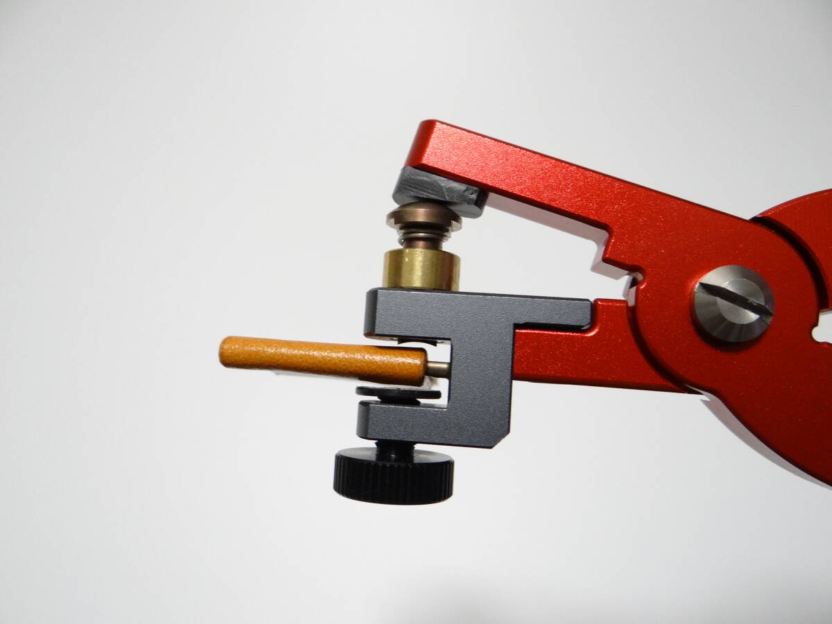 ご使用方法はベルトをカッター針棒に差し込み、黒いダイヤルネジを締めて写真のように固定してから加圧願います。