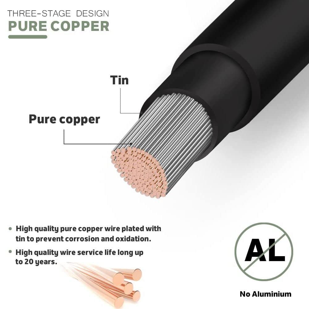 対応範囲:一端がソーラーパネルに接続し、もう一端がソーラー充電コントローラーに接続しているソーラーコネクタ付きの2本のケーブル。太陽光システム/ソーラーシステムには最適です。ソーラー発電所、pvコネクタ、pvジャンクションボックスに適しており、ほとんどのソーラーパネルに付属の同様のMC4タイプコネクタに簡単に接続できます。銅線表面に錫メッキ抗酸化処理され。
