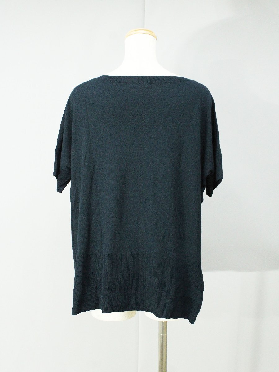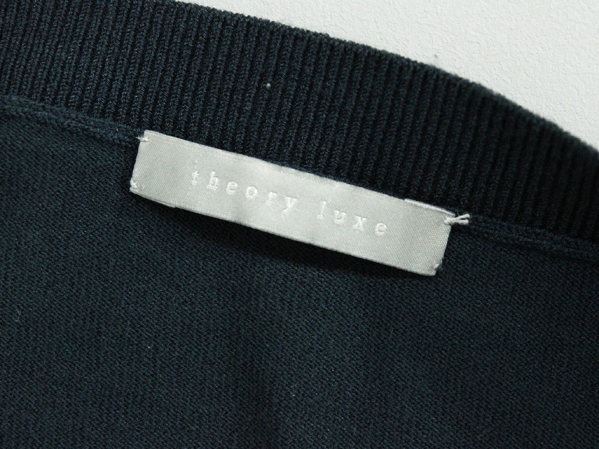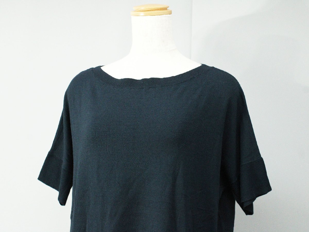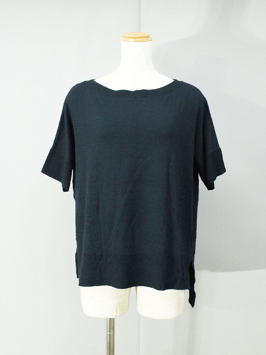 美品 セオリーリュクス 無地変形ヘムラウンドネック半袖ニットプルオーバー 濃青38 rl798