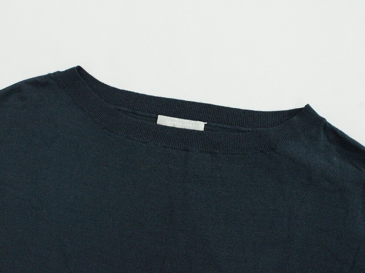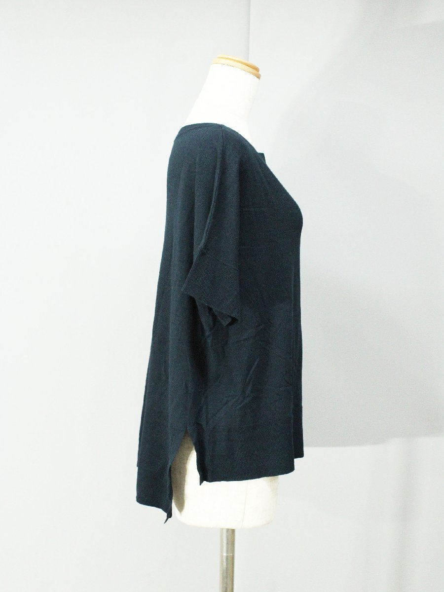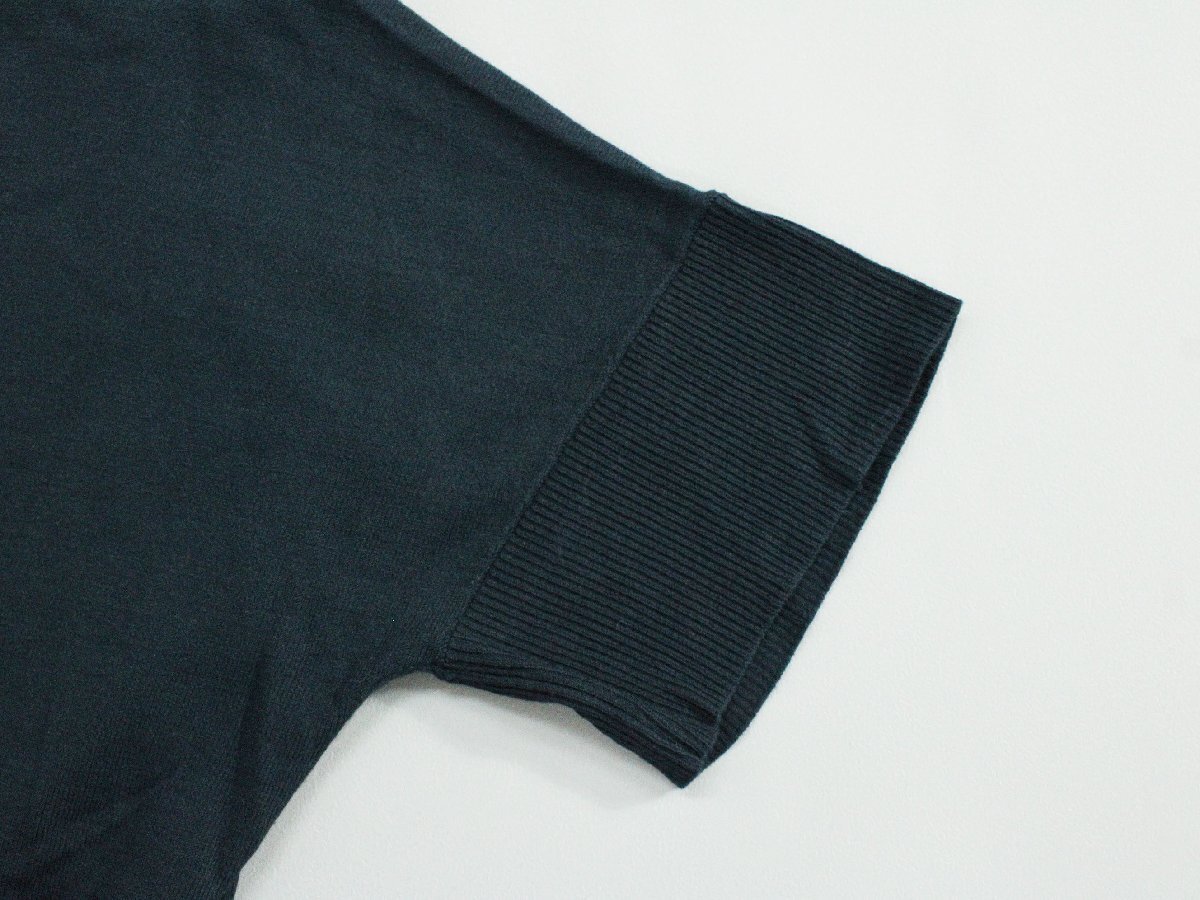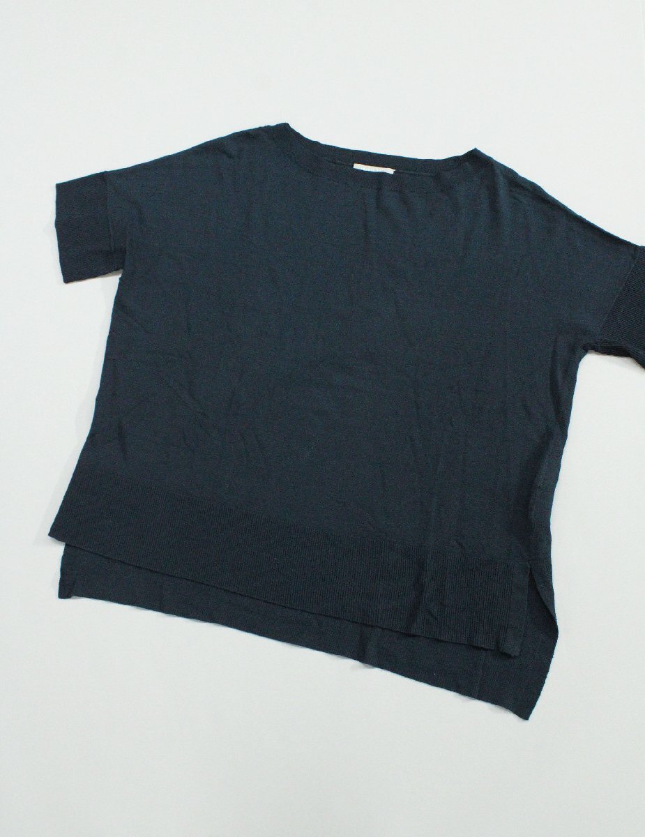 美品 セオリーリュクス 無地変形ヘムラウンドネック半袖ニットプルオーバー 濃青38 rl798