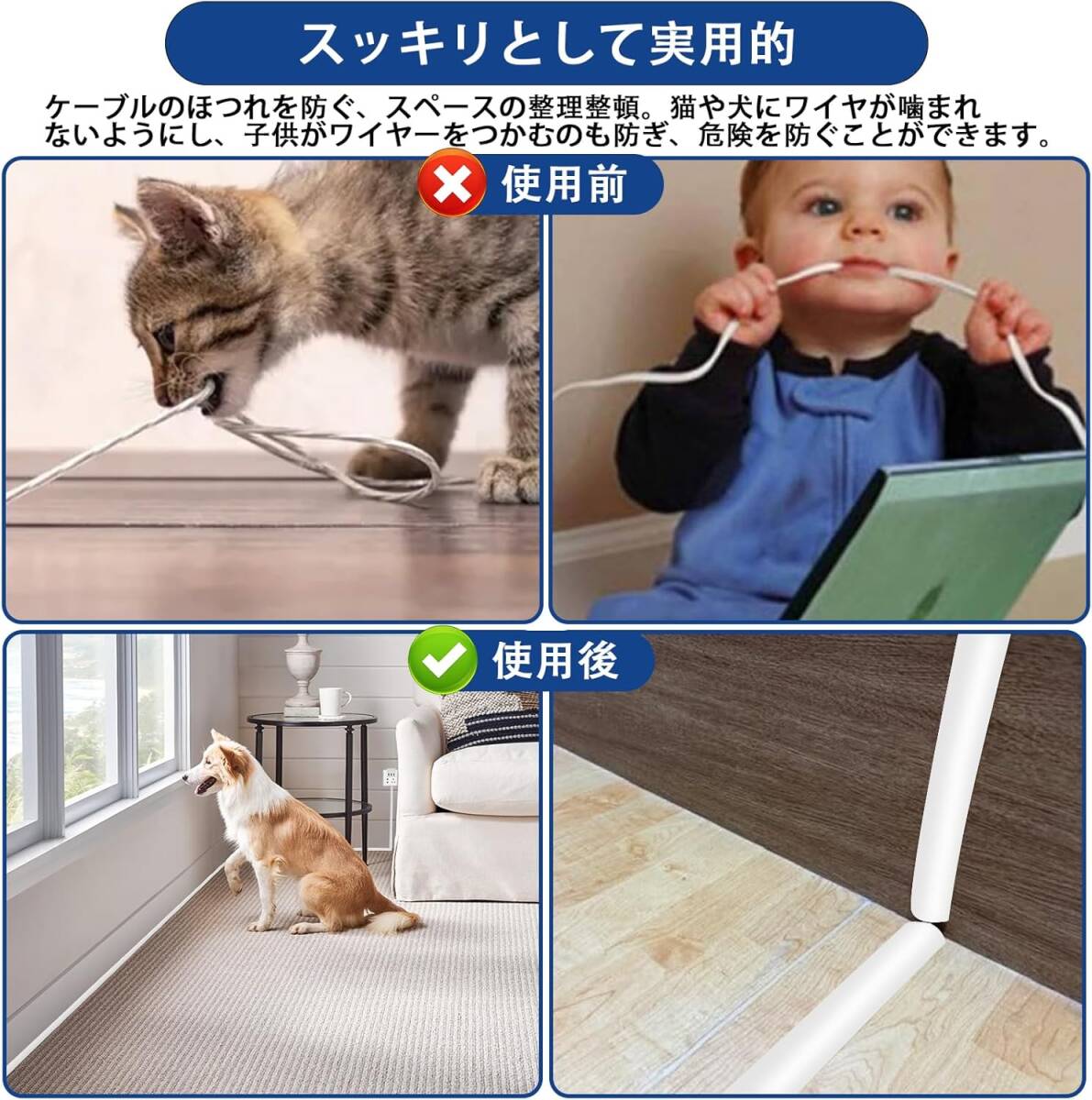 【安全で無毒な素材】このケーブルカバーは高品質のPVC素材から作られ、無毒、無味、燃焼防止、絶縁で感電防止ができ、どこでも安全に使用できます。また、耐摩耗性に優れ、耐衝撃性があり、十分な緩衝力を備えており、椅子にぶつけてもワイヤーをしっかりと保護できます。配線カバーはワイヤーを360°完全に包み、掃除がやすくなります。更に、子供がコードにつまずいたり、ペットがケーブルを噛んだり踏みつけたりするのを防ぎます。