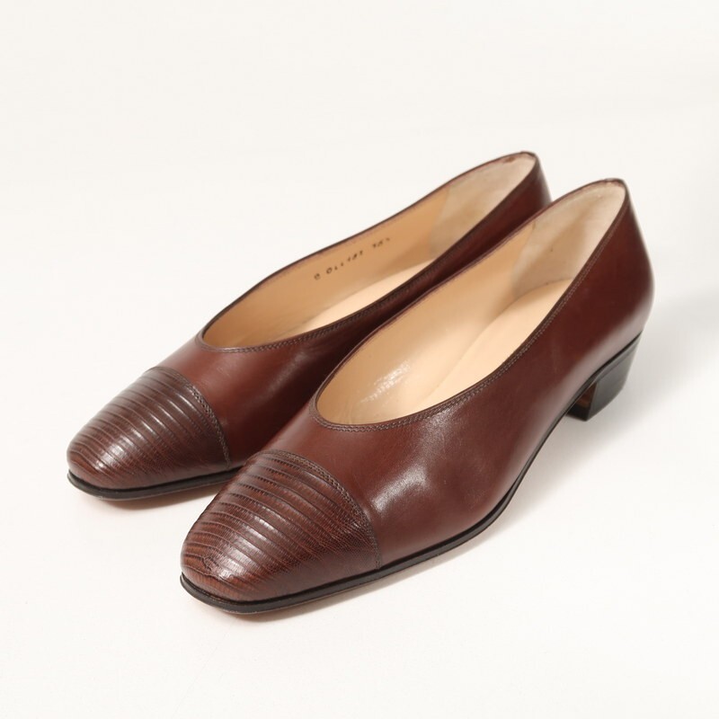 GS0928■イタリア製 TANINO CRISCI タニノクリスチー レザー キャップトゥパンプス 型押しレザー サイズ36.5 23.5cm相当 ブラウン | |||