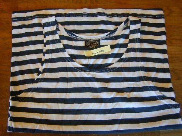 軍の支給品ではありませんがコットン素材で涼しげなライトウェイトTシャツ。人気のあるネイビーボーダーです。カラーはネービー×ホワイト。少し大き目のゆったりした作りです。 サイズ 肩幅 身幅 着丈 M 30cm 46cm 61cm クロネコネコポス便200円でお送りいたします、落札価格にプラスでお願いいたします。