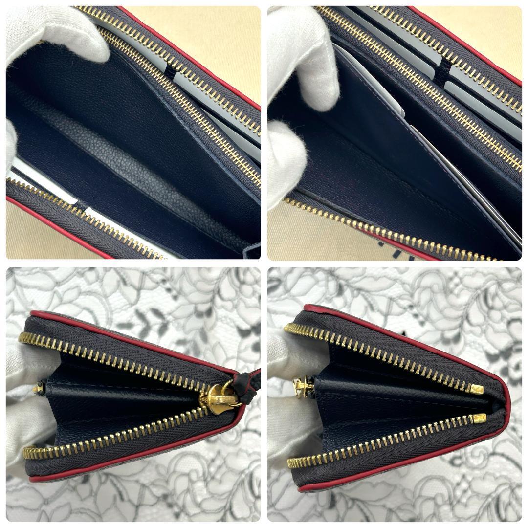 柔らかなレザー素材が特徴的なアンプラト クレマンスの長財布です!通常のジッピーウォレットよりコンパクトサイズでバッグにも入れやすく、ネイビー×レッドの組み合わせがお洒落なデザインです