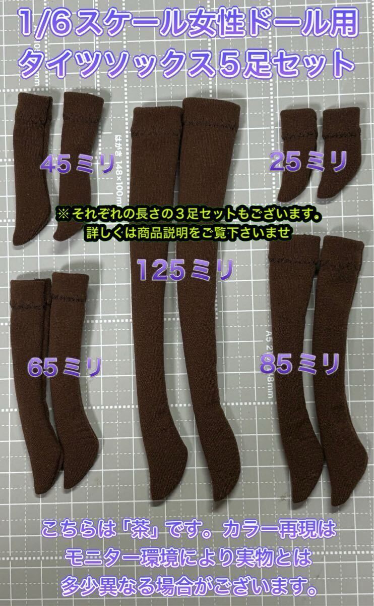 リカちゃん、ジェニー、ネオブライス、アイシードール 、オビツ27女性ボディ、ハッシュタグボディなどが着用出来る、薄手の化繊ソックス長さ違い、平置きで約125ミリ、85ミリ、65ミリ、45ミリ、25ミリの5足セットです。