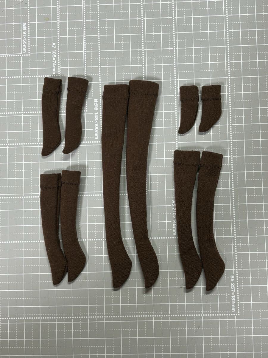 足にピッタリ沿うブカブカ感の無い型に作ってありますので、長いソックスだと特に、ドールの足が綺麗に映えると思います。