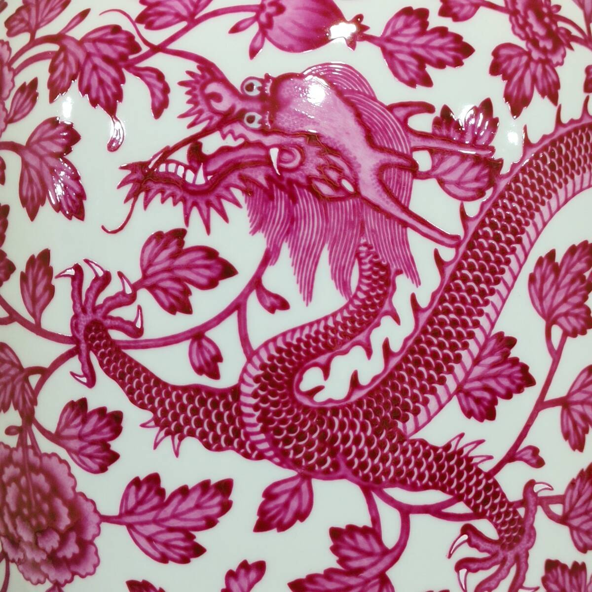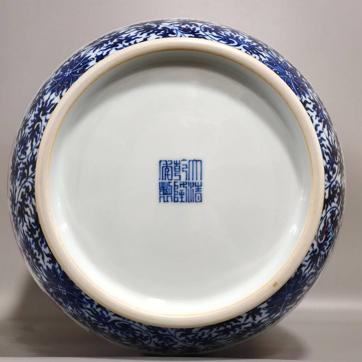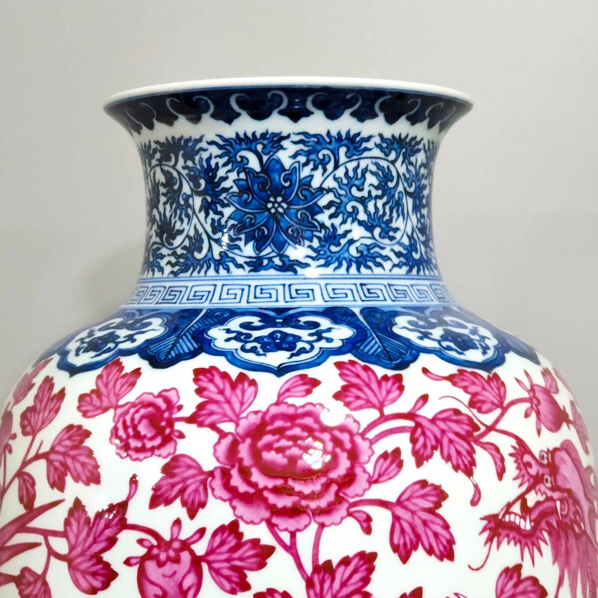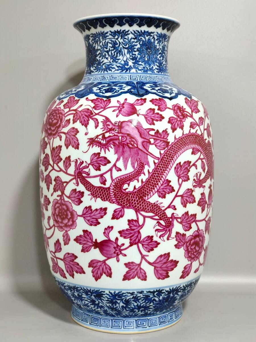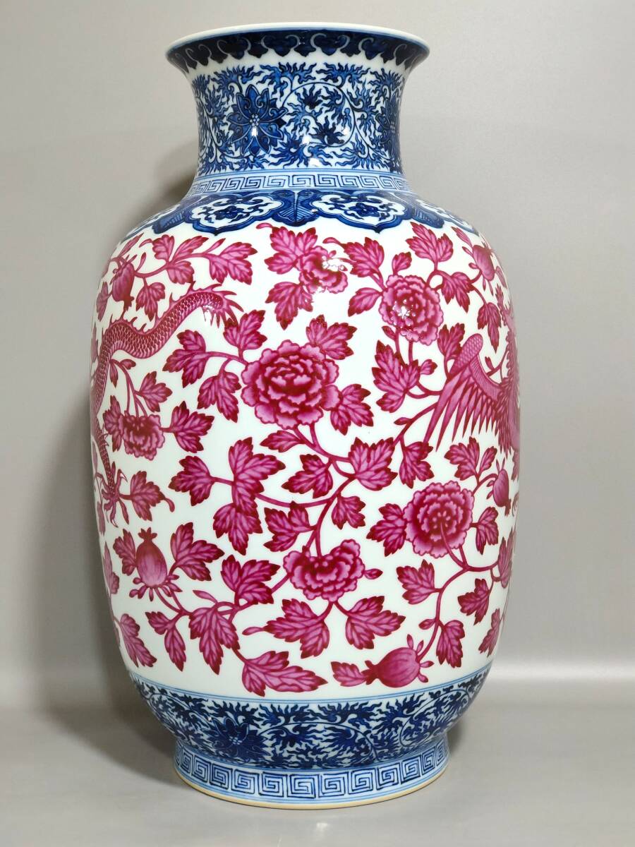 ◆珍蔵◆中国古美術 大清乾隆年製款 青花 臙脂紅 龍鳳紋冬瓜瓶 精品 細密細工造 置物 擺件 古賞物 時代物 A43