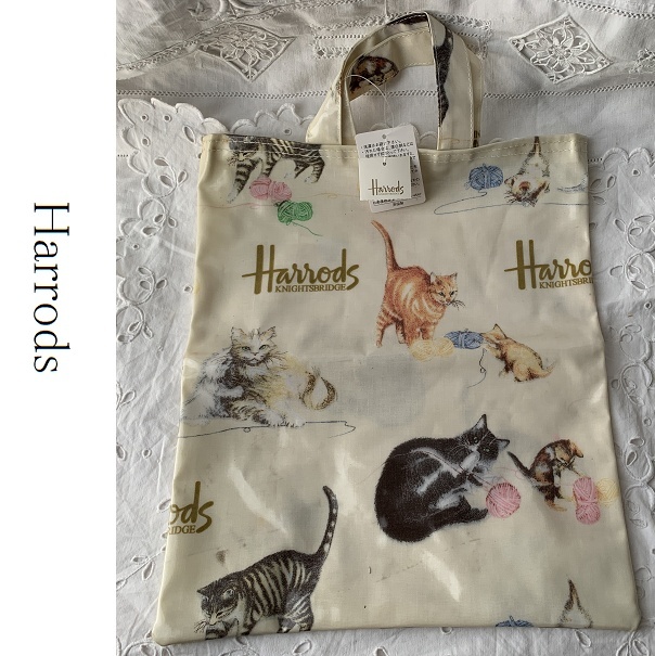 新品タグ付き Harrods ハロッズ  トートバッグ  ネコ  エコバッグ ねこ柄 キャット  cat  未使用