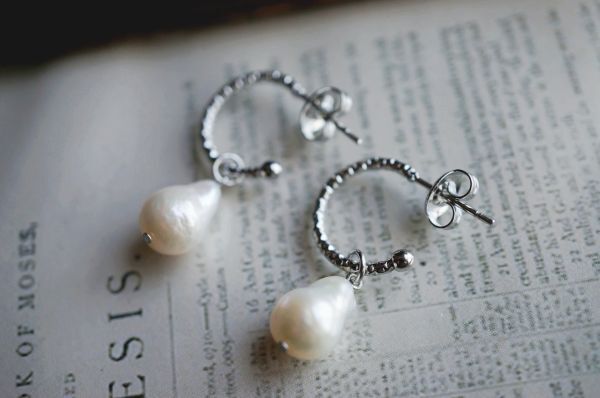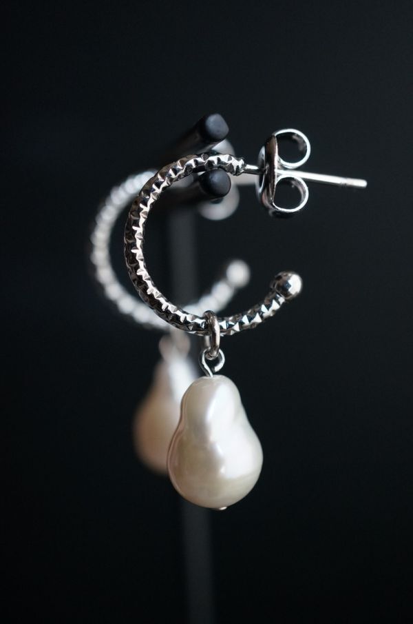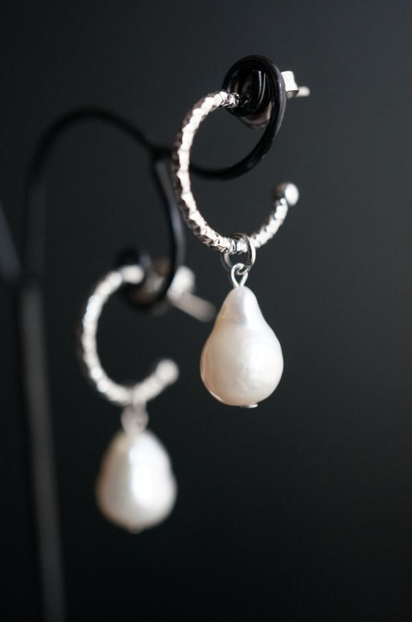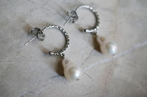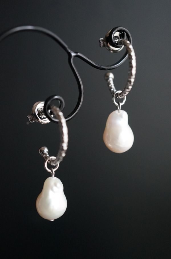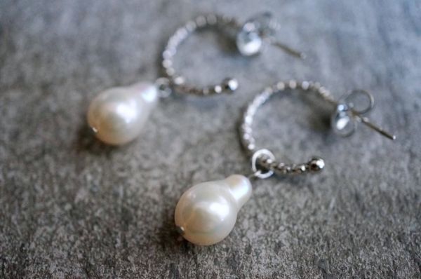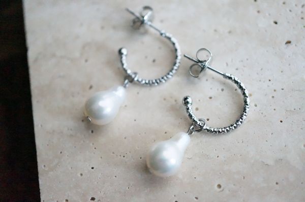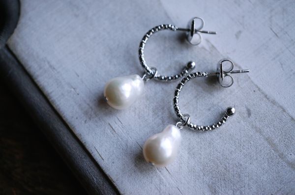サージカルステンレス ピアス 504 淡水真珠バロック ハーフフープピアス 金属アレルギー対応金具使用 天然石・パワーストーン