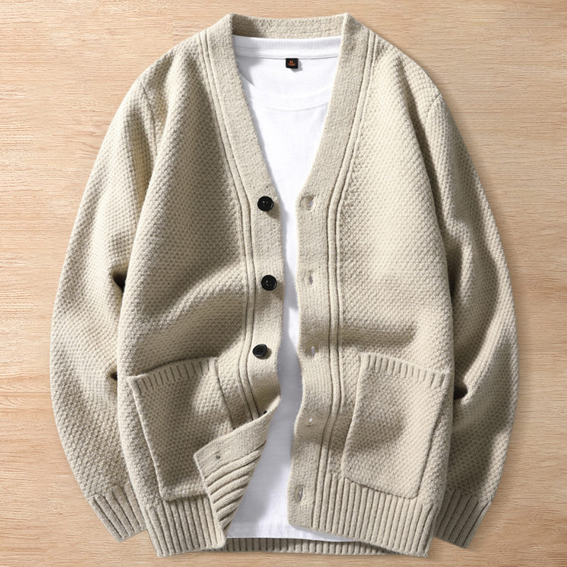 Y6414-Lベージュ 新品DCKMANY カーディガン ウール混 ニット セーター 柔らか 防寒 暖かさ 秋冬 厚手 メンズ カジュアル トップス アウター