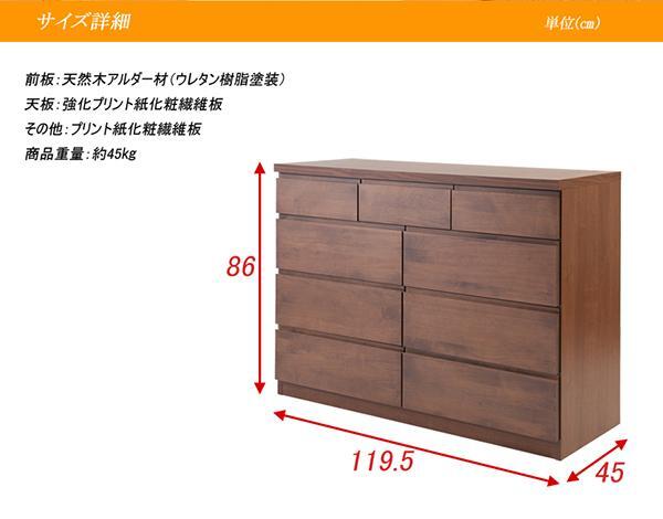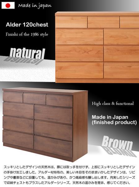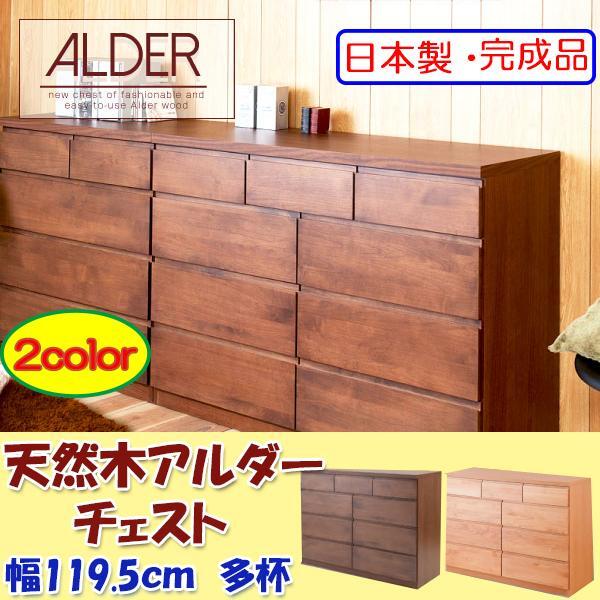 国産完成品!天然木アルダーチェスト 幅119.5cm 多杯