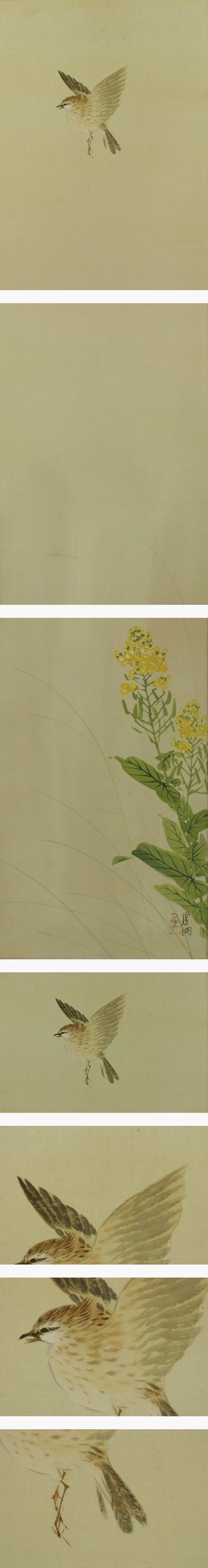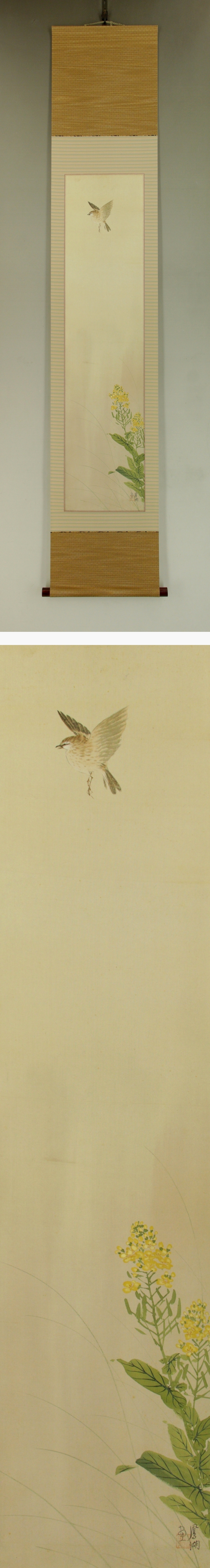 | №2105096【模写】村上鳳湖【揚雲雀】◆絹本◆共箱◆改装済掛軸 | |