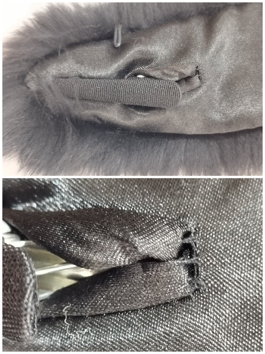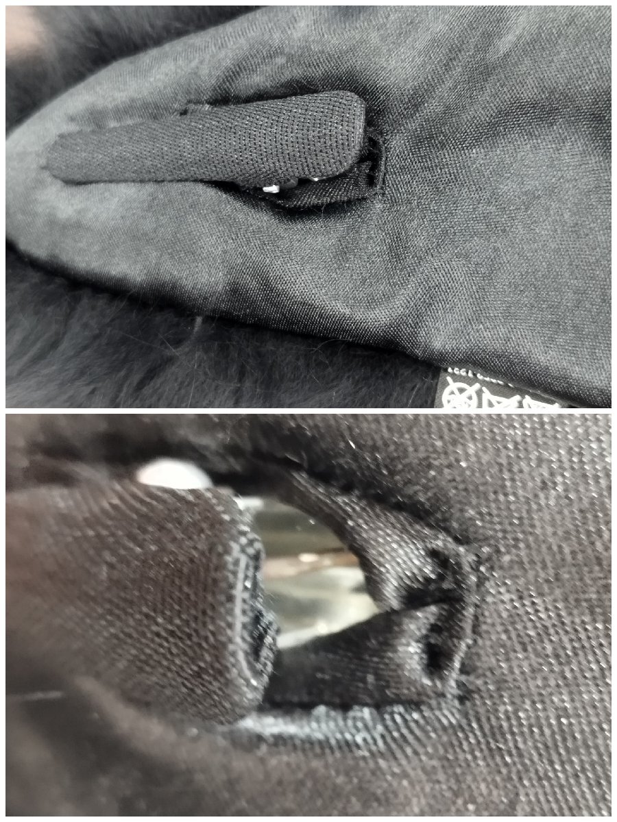 香水のような臭いあり/ボタンフック動きます/クリップの金具まわり糸ほつれあり
