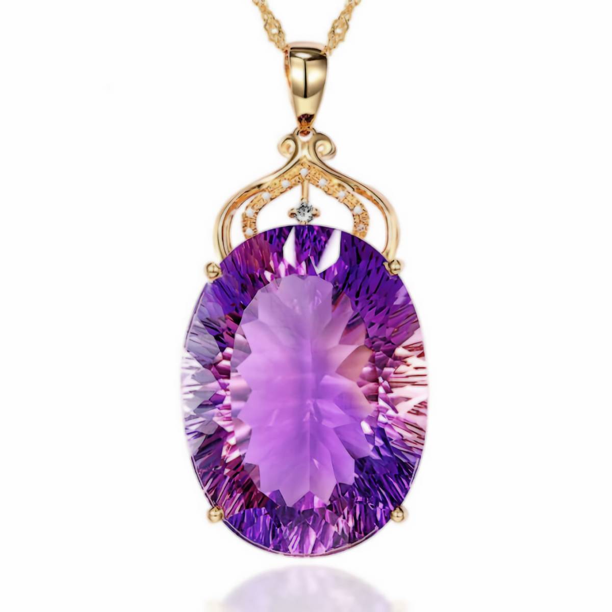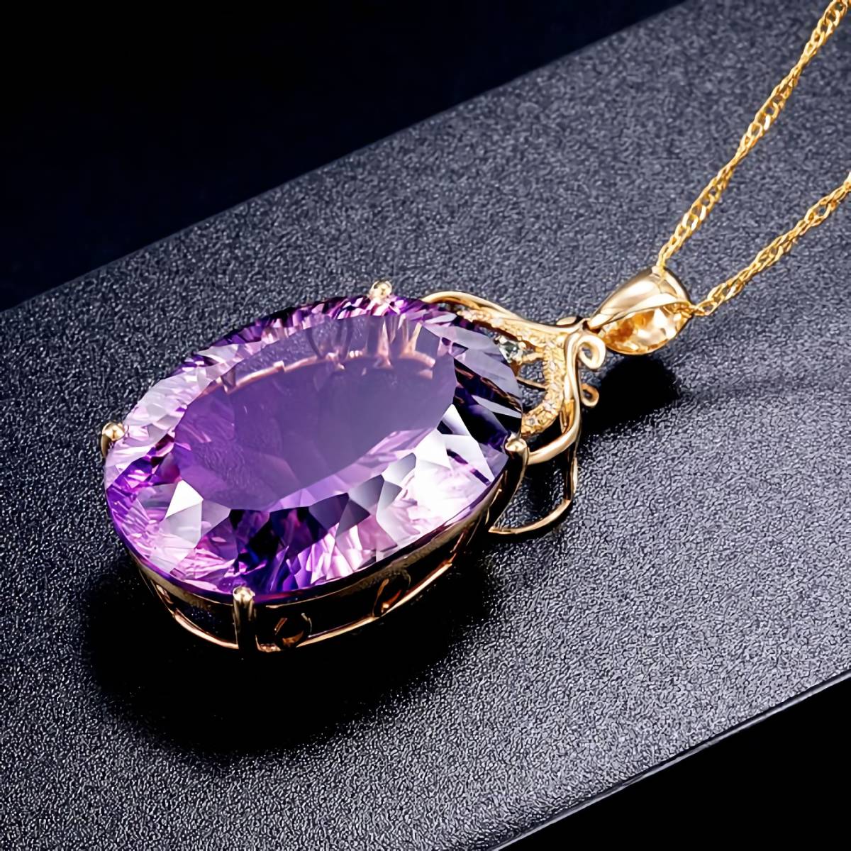 こちら存在感あるアメジストに金彩が映えるゴールドネックレスとなります。