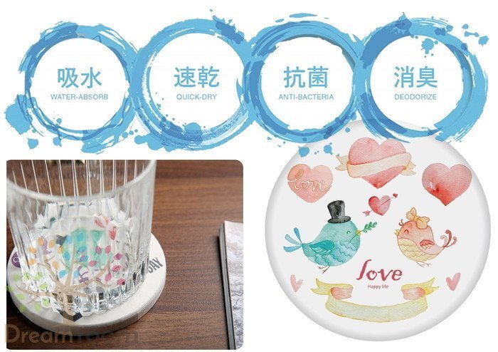 056-05 吸水力抜群 速乾性 珪藻土 かわいい コースター 丸 小鳥 速乾 水滴を素早く吸収☆