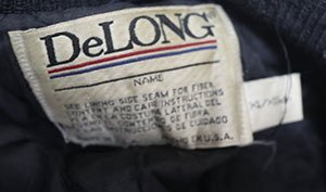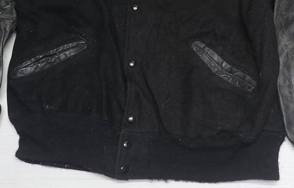 アメリカ買い付けのアメリカ製のDELONGの袖Xポケット縁レザーのスタジャンの黒系です。