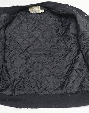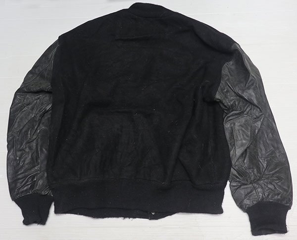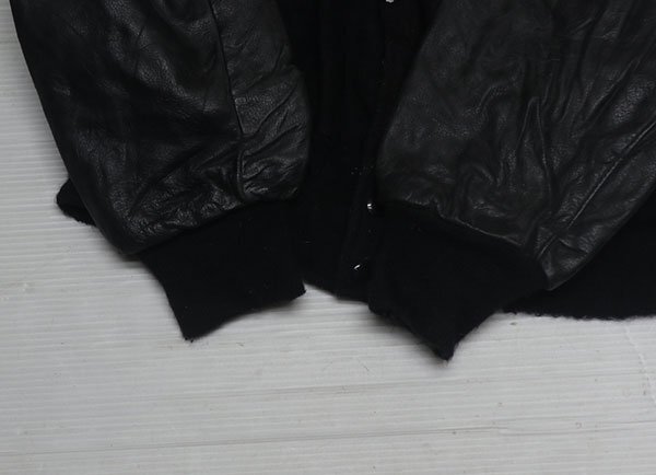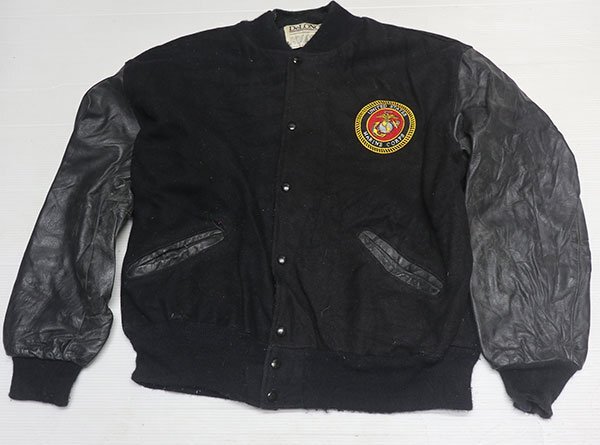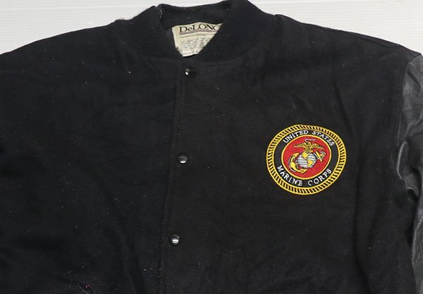 WJ21デロングDELONGアメリカ古着アメリカ製ウールジャケット袖革スタジャンXLビッグサイズUSMC海兵隊アワードジャケット中綿入り黒系