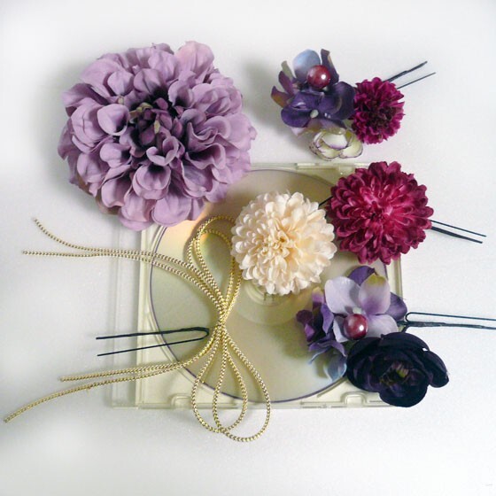 材 料: アートフラワー(ダリア 菊 桜)ベリーピック 紐 コサージュピン ユーピン