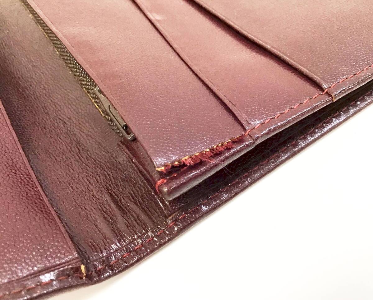 ・お札入れの脇部分がほつれています。 ・スレや汚れがあります。 【サイズ】横幅:約19.3㎝、縦幅:約10㎝、厚さ:約1.5㎝ ※サイズは測る場所等で多少変わってくるので、あくまで目安としてください。 ※当方、専門的な知識はありませんので詳しい事まではわかりません。 ※写真にてご判断頂ける方のみ入札をお願い致します。 |