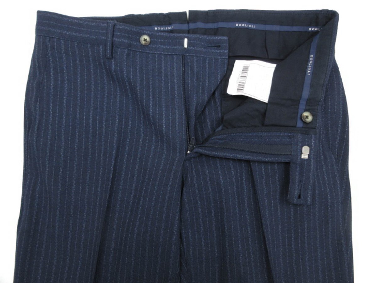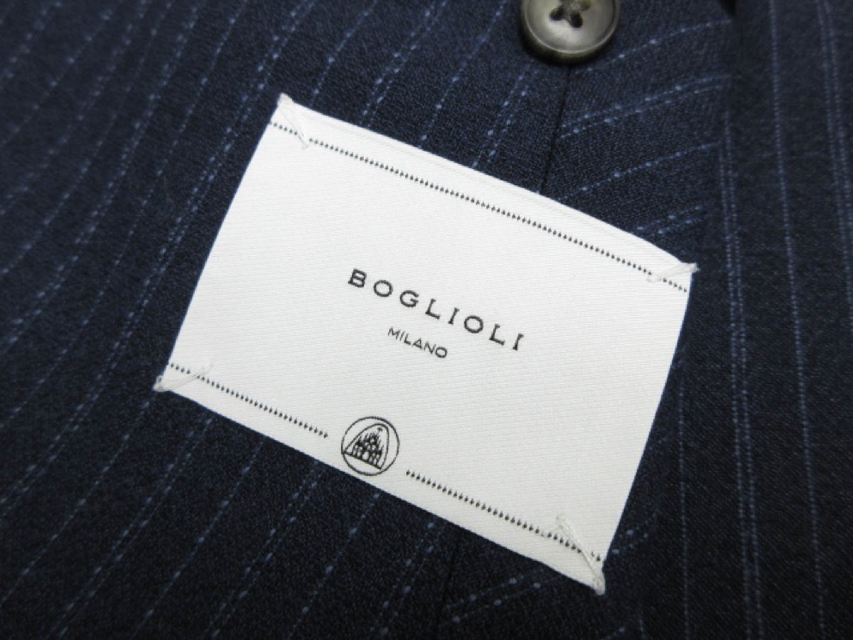 超美品【BOGLIOLI ボリオリ】N2182E シングル3ボタン段返り ストライプ柄 スーツ (メンズ) size46/6R ネイビー系 イタリア製 ◇32RMS2331◇