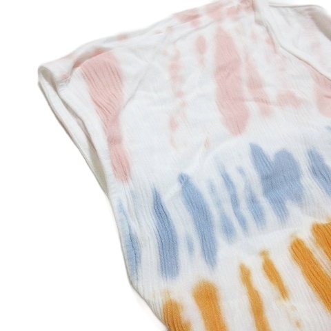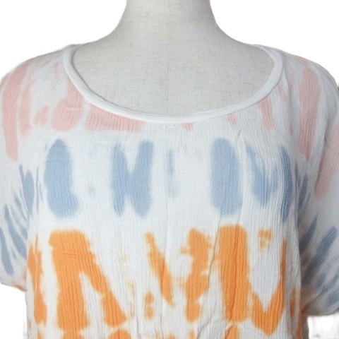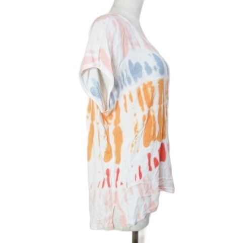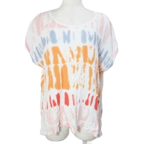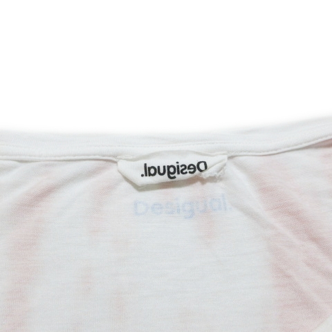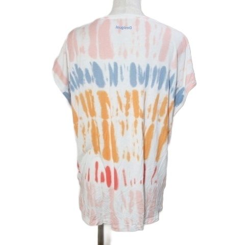デシグアル Desigual 美品 大きいサイズ カットソー フレンチスリーブ 半袖 タイダイ ロゴ XL マルチカラー X レディース