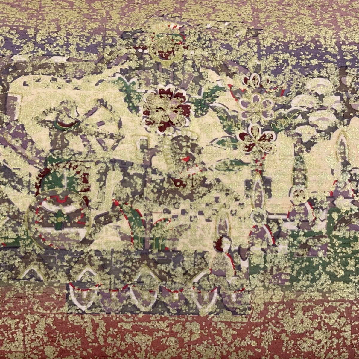 | セミフォーマルでお使いいただける袋帯でございます。 見る人に重たい印象を感じさせない女性ならではの、気品豊かな一品です。 締め跡がございます。 お太鼓垂先間に薄汚れ、前柄お太鼓間と手先前柄間にシワ、表地所々に金彩の剥がれがございます。 裏地にシミ、裏地所々にシワがございます。 リユース品としては良い状態で、まだまだご活用頂けると思われます。 ※なお、厳しく商品の状態確認を行っておりますが、記載の汚れ以外にも見落とし箇所がある可能性がある旨ご了承いただけますと幸いです。 沢山の商品の中からご覧いただき誠にありがとうございます。 | 状態ランク |