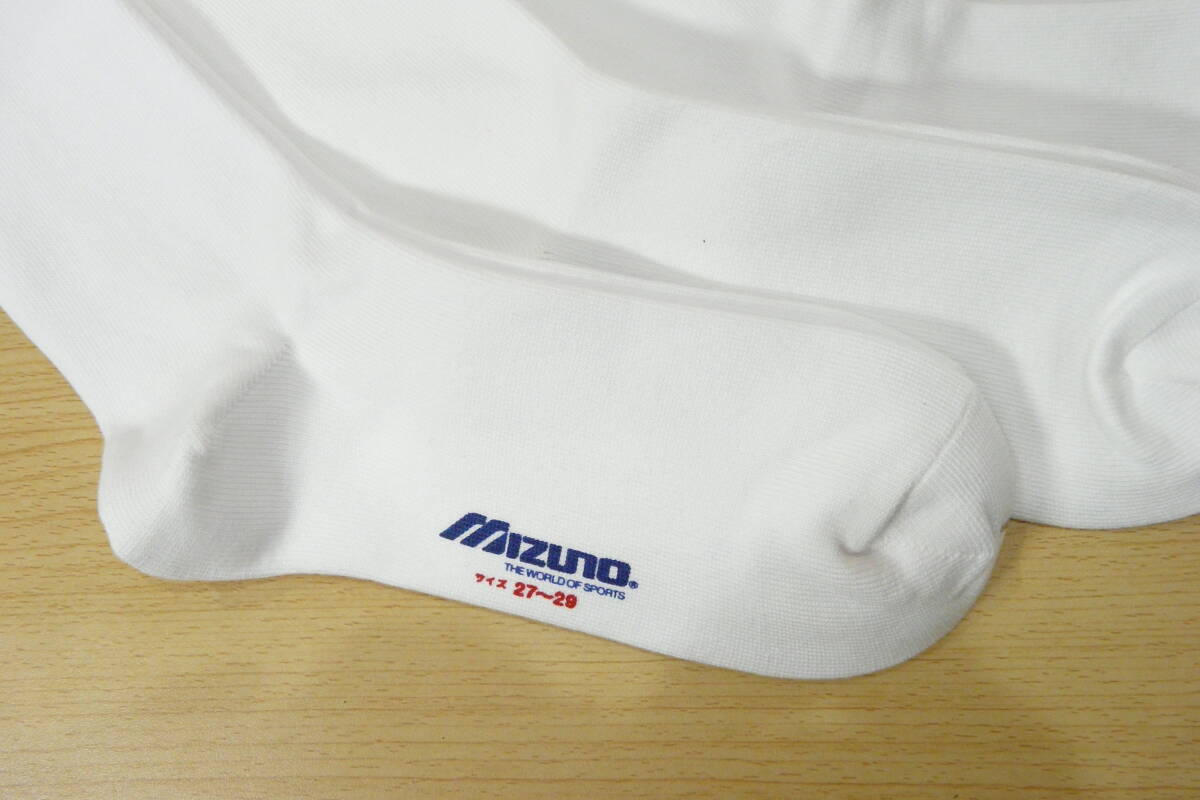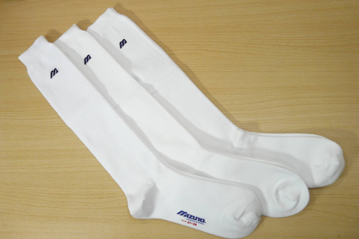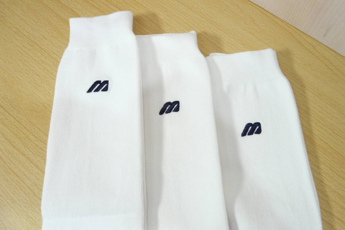【未使用品★レッグウェア】MIZUNO◆Mロゴ刺繍◆白 ハイソックス◆アンダーソックス 3足セット◆厚手◆27-29cm◆45cm丈◆よく伸びる◆