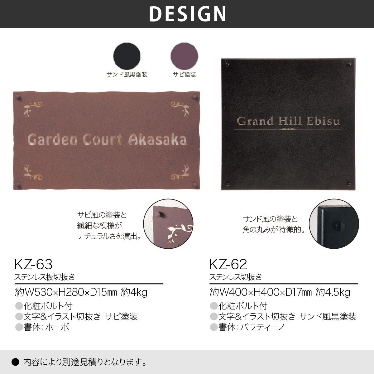 | 商品サイズ・重量 | KZ-67:切文字 KZ-63/62:切抜き GZ-8:彫刻 |