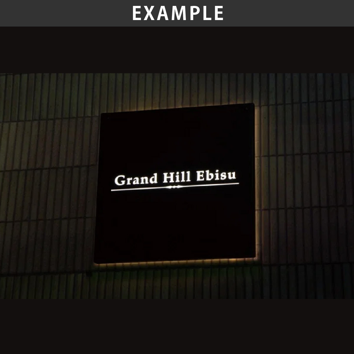 | 商品詳細 | 昼は鮮やかに夜はラグジュアリーに エントランスを飾るLED照明を内蔵した商業用サインです。 内容により別途見積りとなります。 |