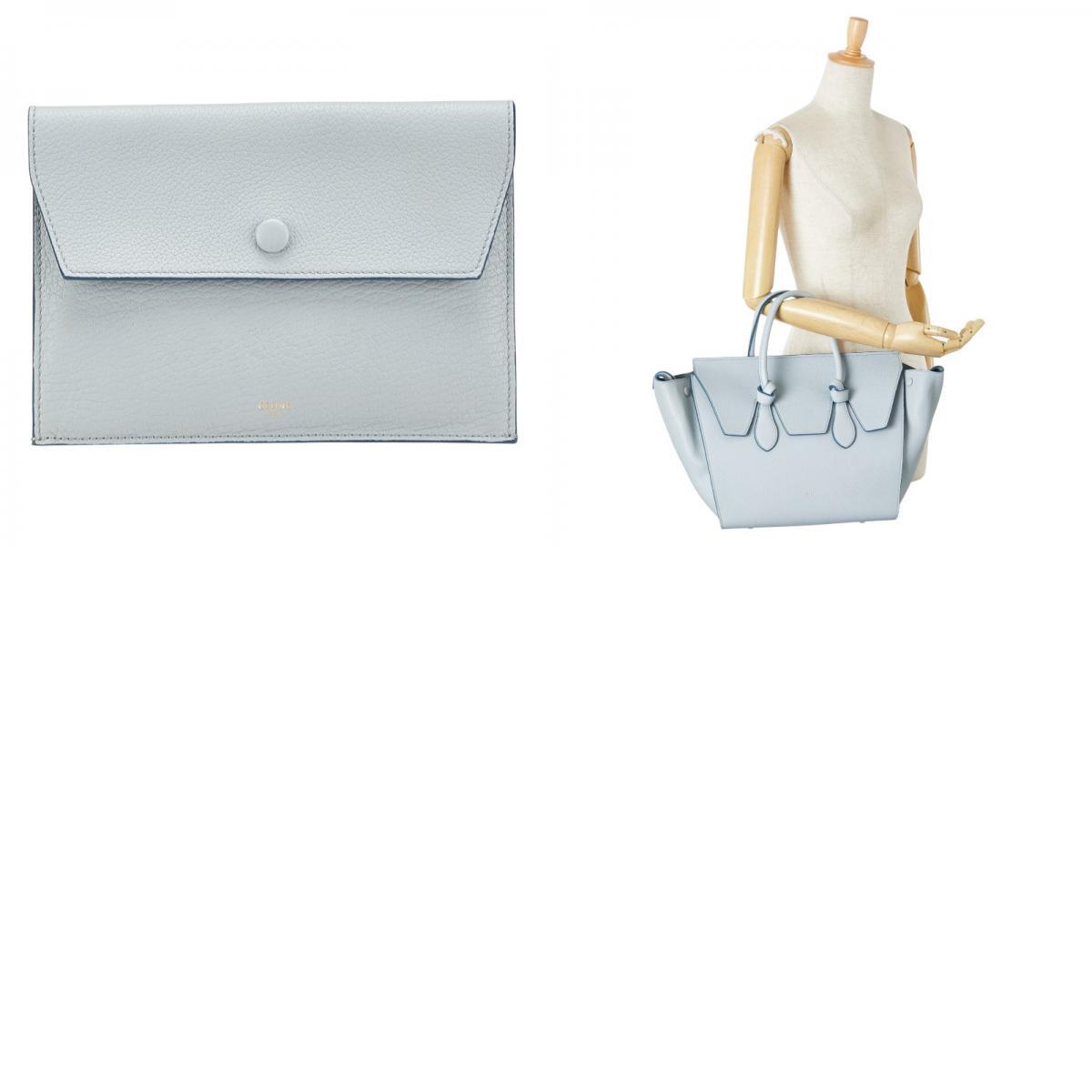 セリーヌ タイバッグ ハンドバッグ ライトブルー レザー レディース CELINE 【中古】