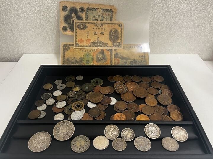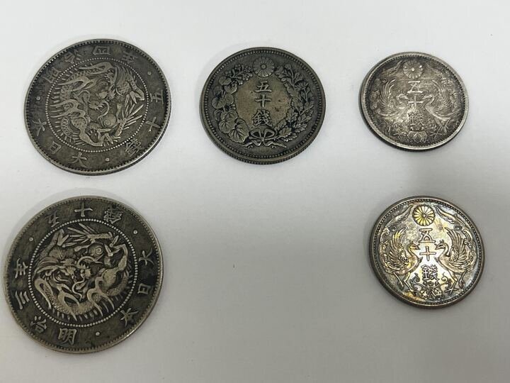 【J79842】日本古銭 おまとめ 銀貨複数 50銭 20銭 旭日竜 / 竜 / 旭日など 他1銭 2銭 銅貨大量 |