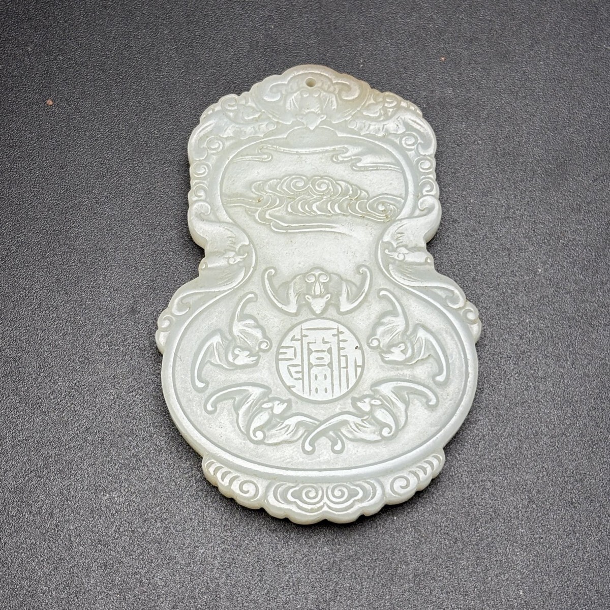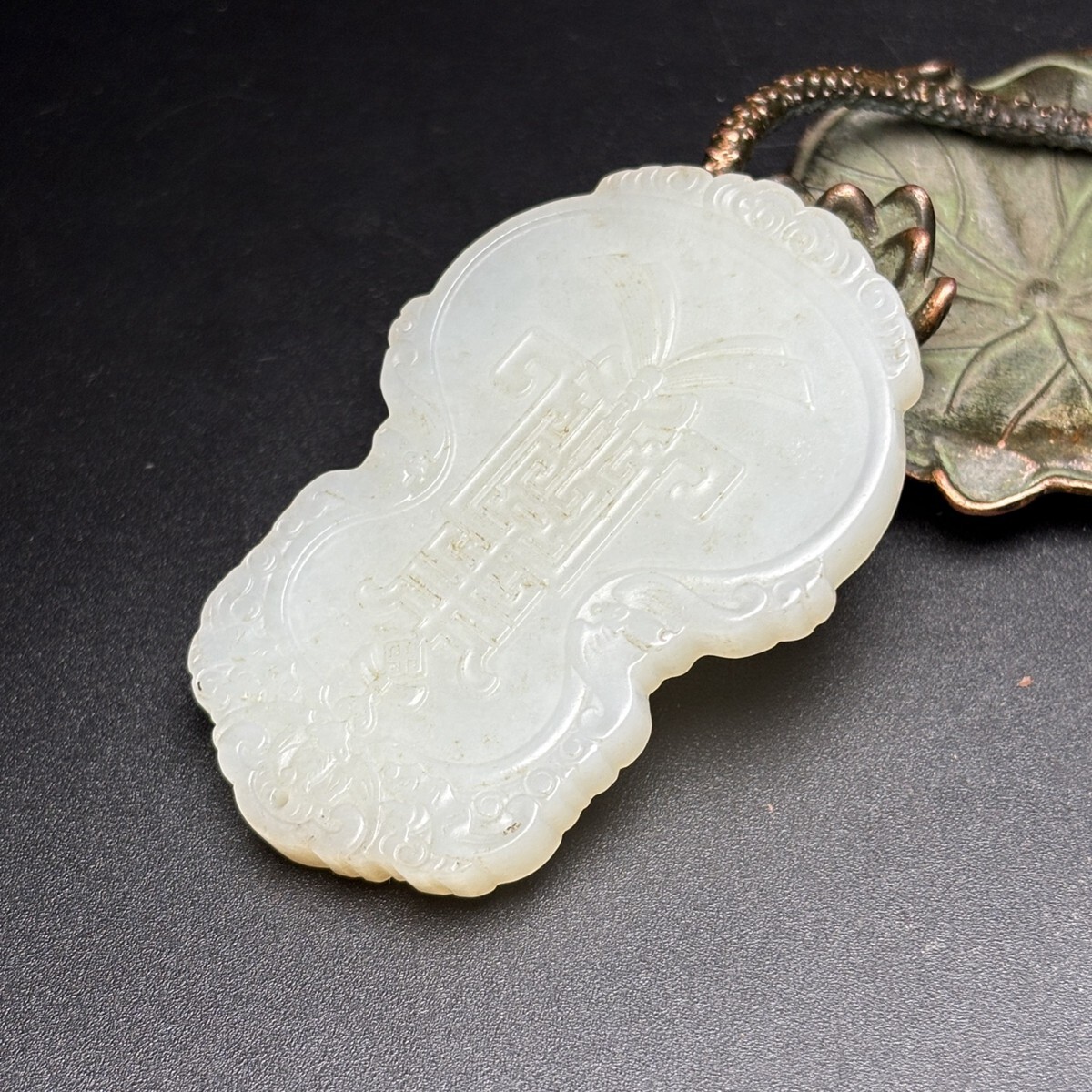 「時代物 和田玉 白玉彫り 福祿長壽 五福臨門 葫蘆佩」極細工 裝身具 賞物 中国古美術 旧蔵出