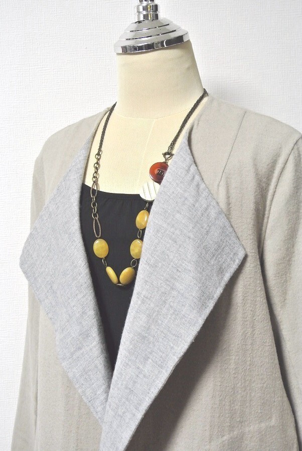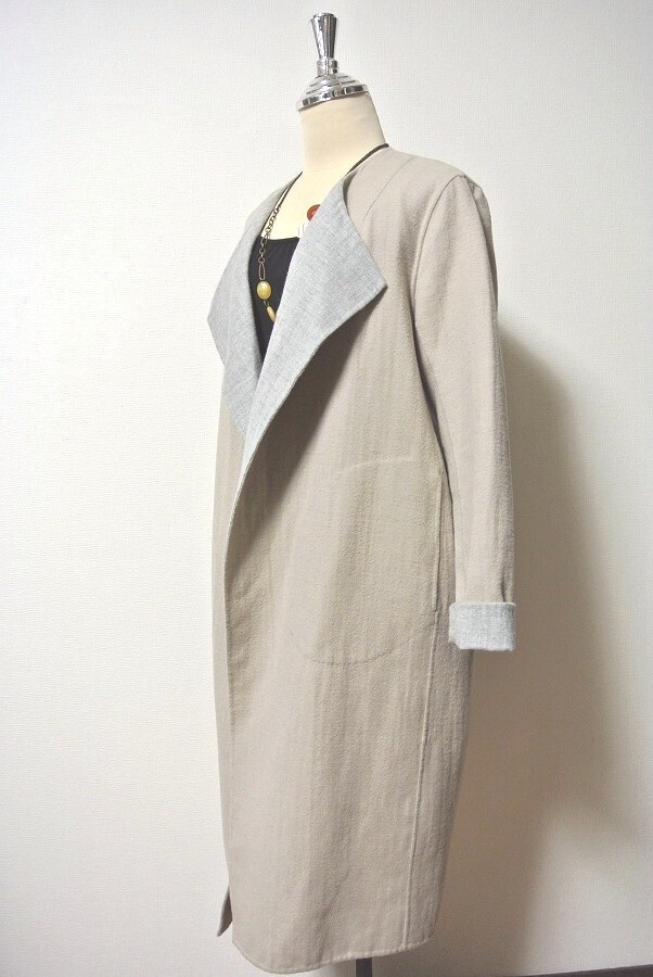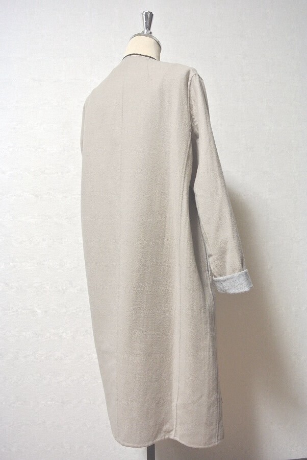 表示サイズ:(S) 実寸サイズ〔約〕:着丈(襟付け根から)106cm 身幅(脇下)53cm 肩幅 43cm 肩から袖丈 60cm ※肩幅は肩ラインに沿った湾曲したラインの計測となります。 身長160cm前後の方にお薦めです。 平置きにした状態での実寸サイズとなります。 素材、シルエット等により多少誤差がある場合がございます。 ご了承いただきたく思います。 |