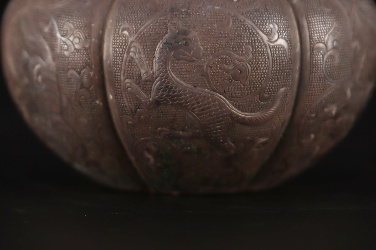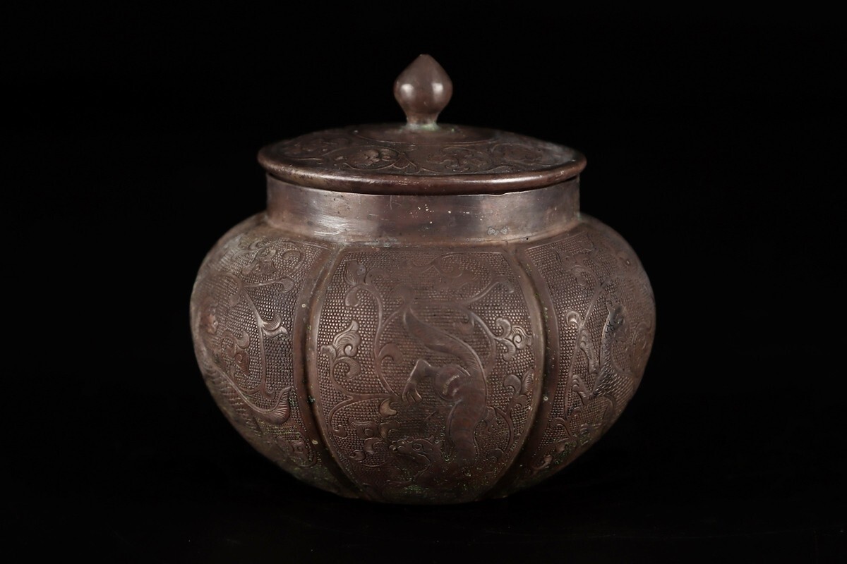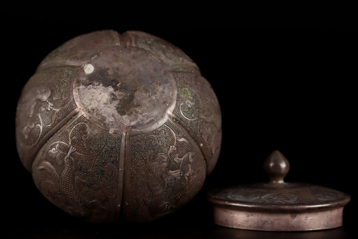 「唐代 純銀 彫り 纏枝瑞獣紋 小罐」極細工 擺件 賞物 古美術 骨董品 蔵出