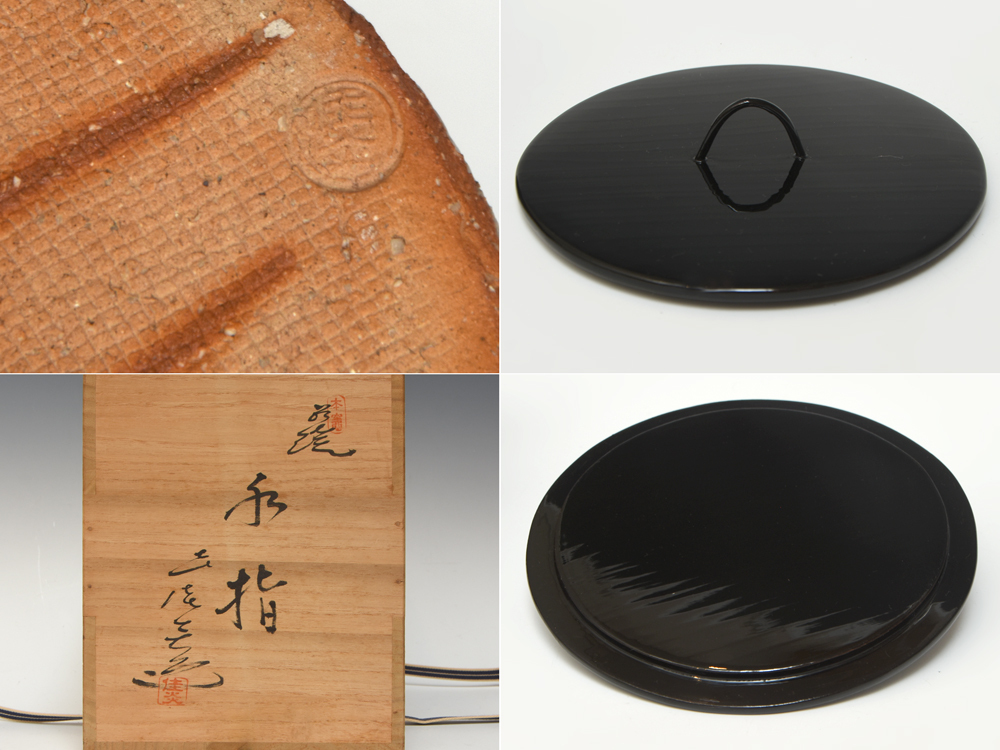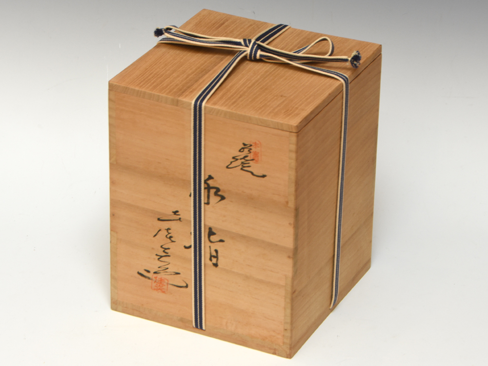 萩焼窯元 勝景庵 兼田佳炎(造)萩水指 です。 焼成時の釉薬の景色が印象的な作品です。 底部に「佳炎」あり。 未使用品ではございますが、割れカケなどの破損なく状態は良好です。 ※予めご了承の上ご入札お待ちしております。 ※撮影の際に生じた写り込みなどがございます。 ご理解の程よろしくお願い致します。 |