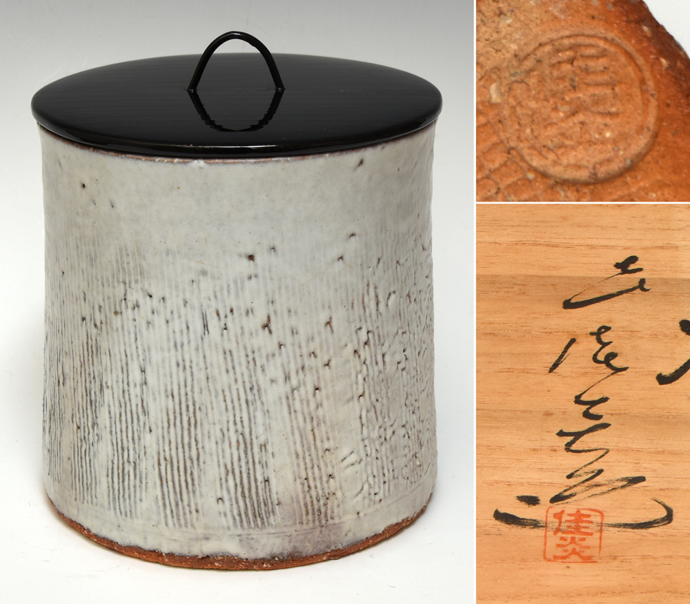 萩焼窯元 勝景庵 兼田佳炎(造) 萩水指 共箱 誂え蓋 陶磁器 茶道具 |