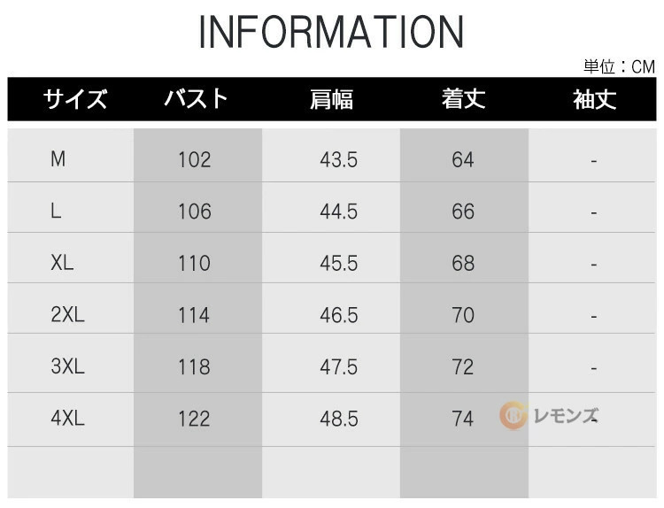 『一目惚れして購入♪価格が安い上に生地が本当にしっかりしてます。』など好評のお声を頂いています! 【 状 態 】新品未使用 【 カラー 】(画像1をご参考ください) 【 素 材 】綿100% 【サイズ】 白4XL 実寸は素人採寸で多少の誤差はご了承ください ご落札前にぜひともサイズ表をご確認ください。 |