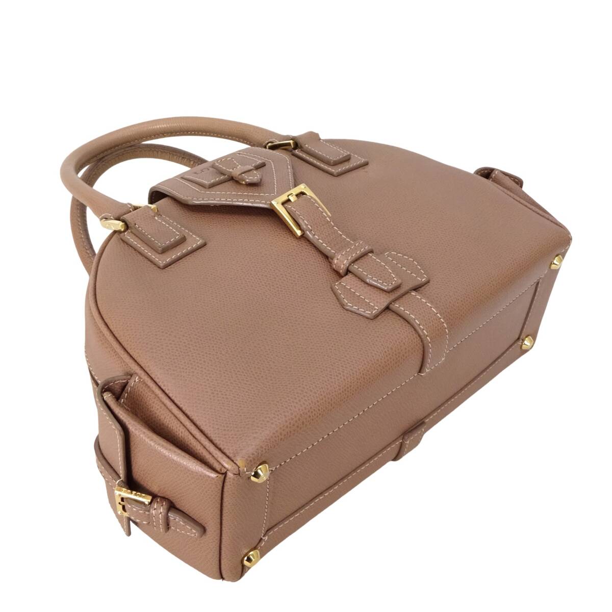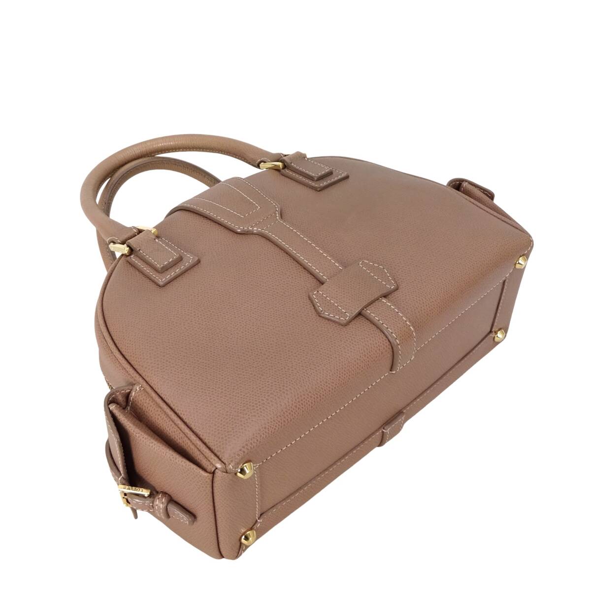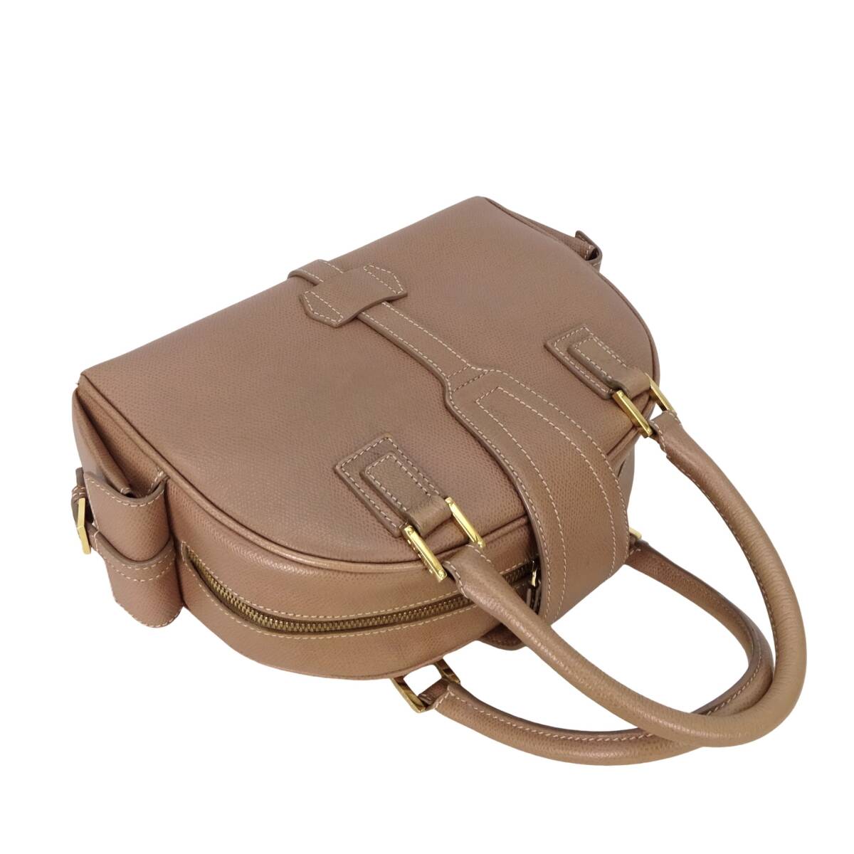 商品の種類 ■ ボーリング ミニボストン ベージュブラウン レザー ゴールド 底鋲 ハンドバッグ ミニトートバッグ