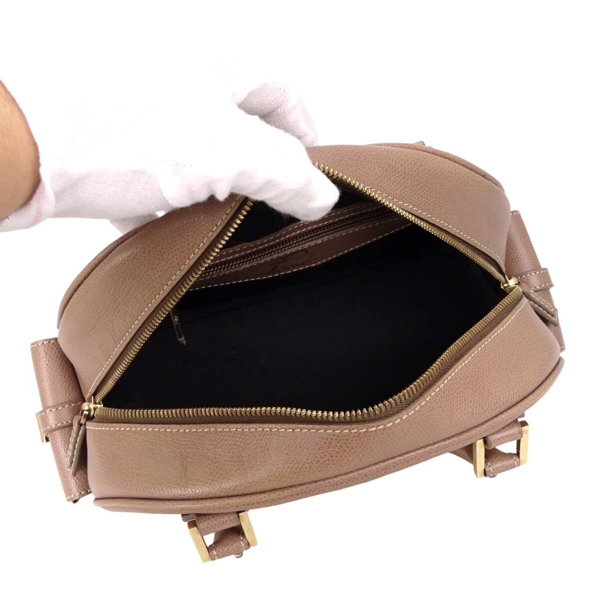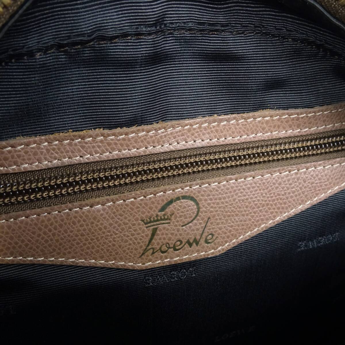 本物 良品■ロエベ■ボーリング ミニボストン ベージュブラウン レザー ゴールド 底鋲 ハンドバッグ ミニトートバッグ