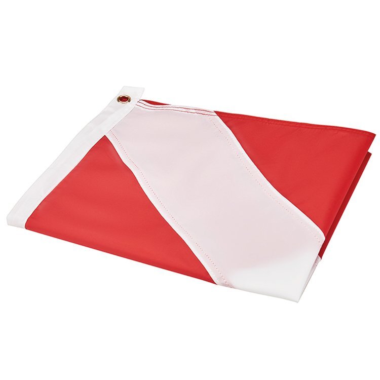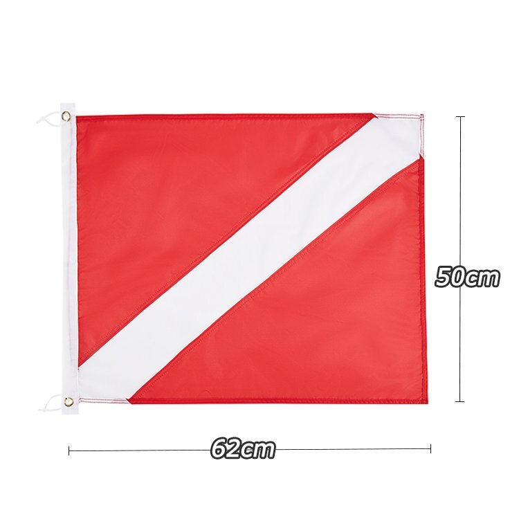 ◆ボートフラッグ ダイビングフラッグ スキューバダイバー旗 信号旗 62x50cm カヤック シュノーケリング ダイビング 海上スポーツ 出航 潜水 釣り 穴開け式 赤白 BOTFLG5062