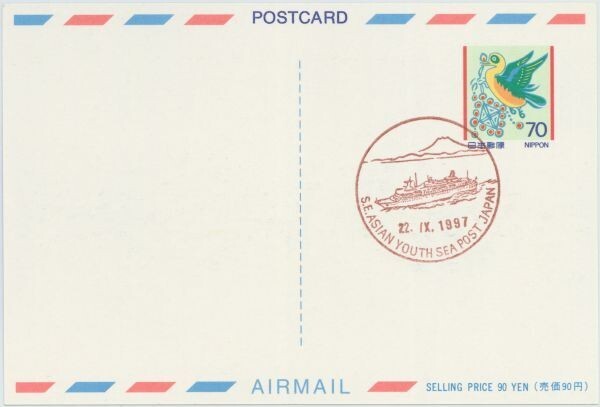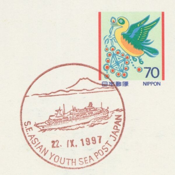 風景印☆24次☆船内・東南アジア青年の船・1997.9.22・エアメール・「牡丹雪」
