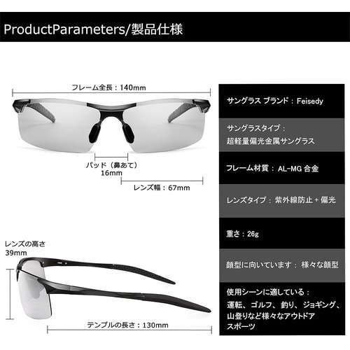 FEISEDY スポーツサングラス メンズ 偏光サングラス UV400保護 超軽量 サングラス レディース 運転/釣りB2442 38