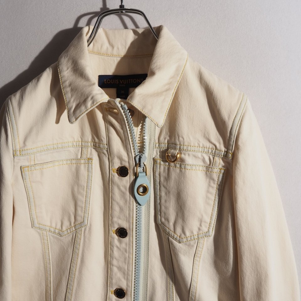 R1707P ▼LOUIS VUITTON ルイヴィトン▼ ブリーチドデニム ジッパージャケット ホワイト 36 / デニムジャケット シーズンレス rb mks