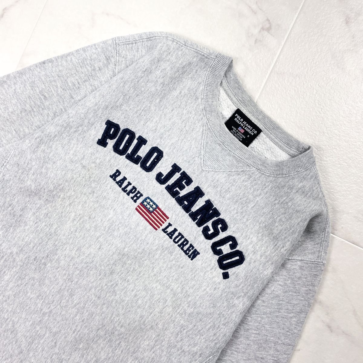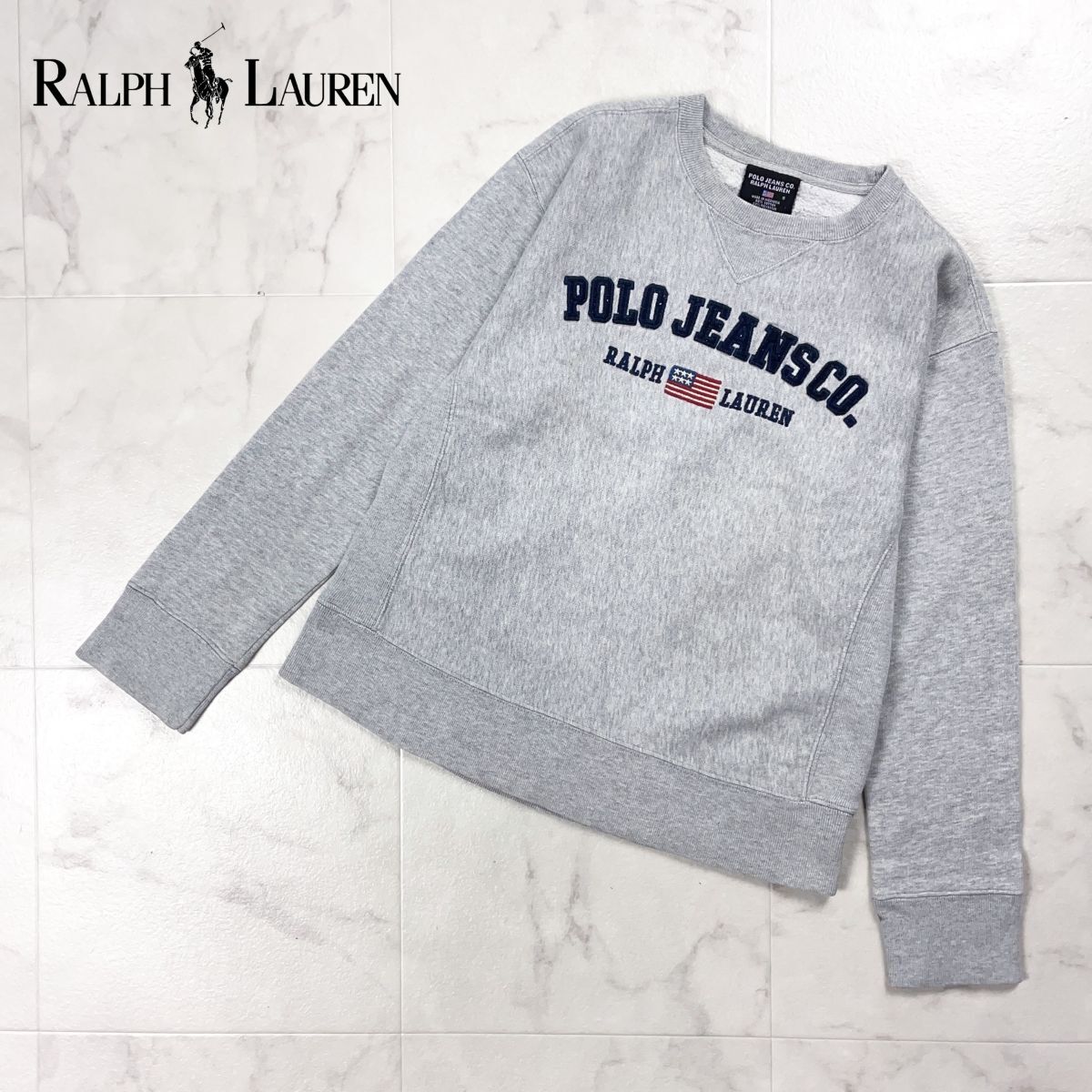 POLO JEANS COMPANY RALPH LAUREN ポロラルフローレン 長袖スウェット ロゴパッチ サイドパネル メンズ レディース グレー サイズS*GD89